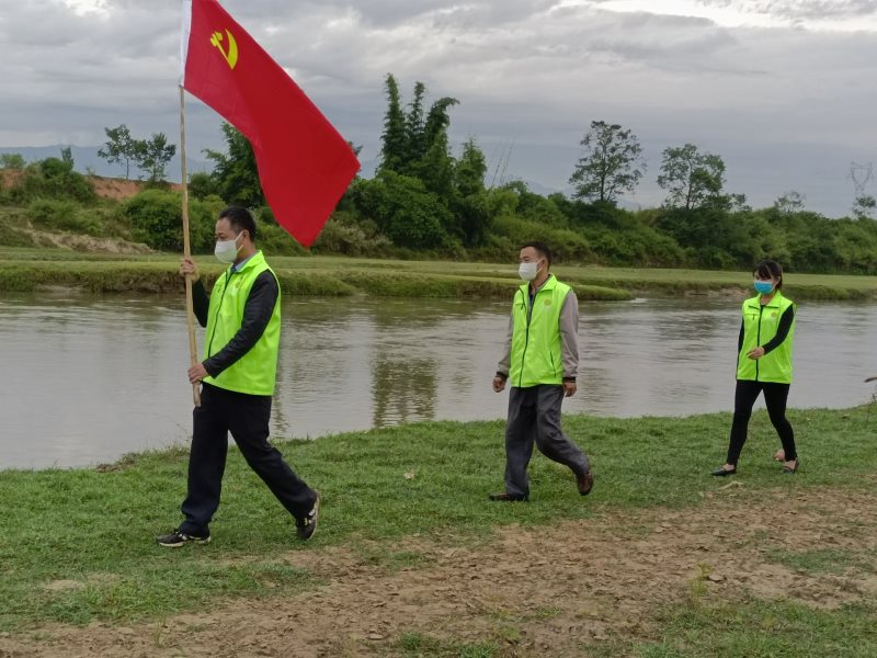 11月3日,在美丽的南宛河畔,一面鲜艳的五星红旗迎风飘扬,蓝色的帐篷在河流与青草之间显得格外显眼,工作人员忙碌着,原来,为了进一步做好疫情防控工作,陇川县林业和草原局在这里增设南宛河沿岸管控工作值守卡点,切实做好两岸人员流动管理。
