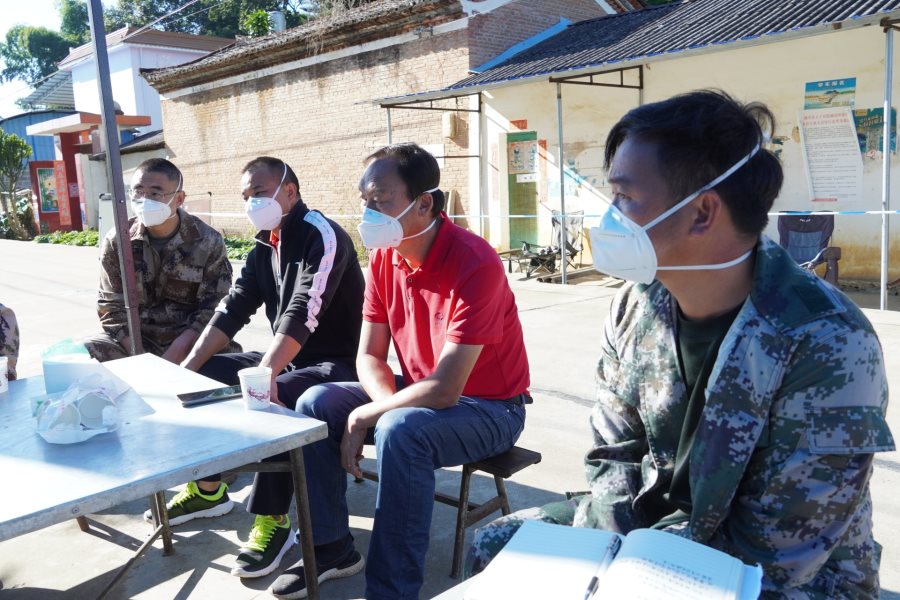 郑洪云与工作队员亲切交谈,听取工作汇报,询问队员们的工作和生活情况,详细了解抵边村寨封控区疫情防控工作和帮助群众解决实际困难情况,同时对队员们舍小家顾大家的奉献精神表示感谢,充分肯定队员目前已取得的工作成效,就进一步加强边境疫情防控管理和为民办实事提出相关工作要求。