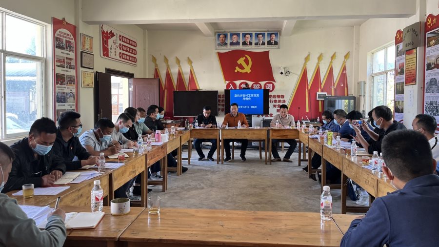 12月1日下午,勐约乡在邦瓦村委会召开11月驻村工作队月例会。乡领导班子成员、各村党总支书记、驻村工作队员共计21人参会。