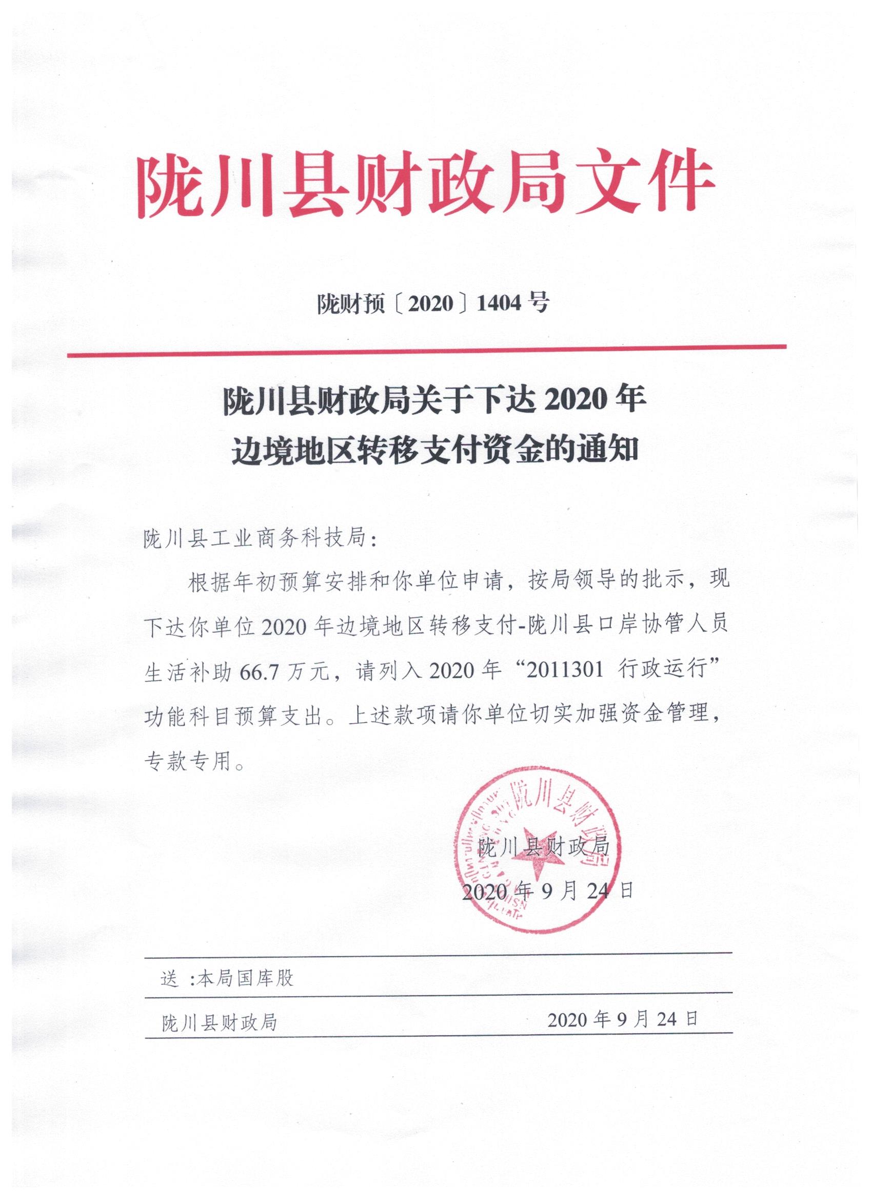 文号:陇财预〔2020〕1404号