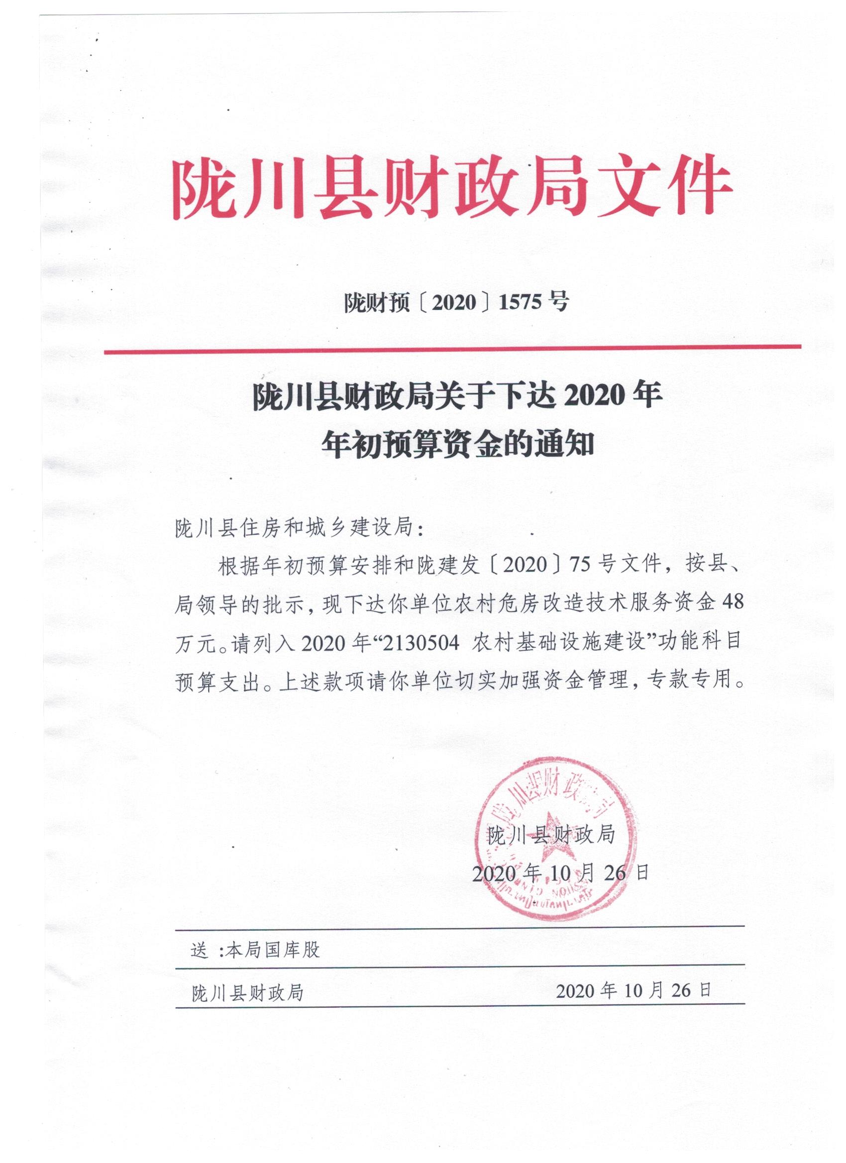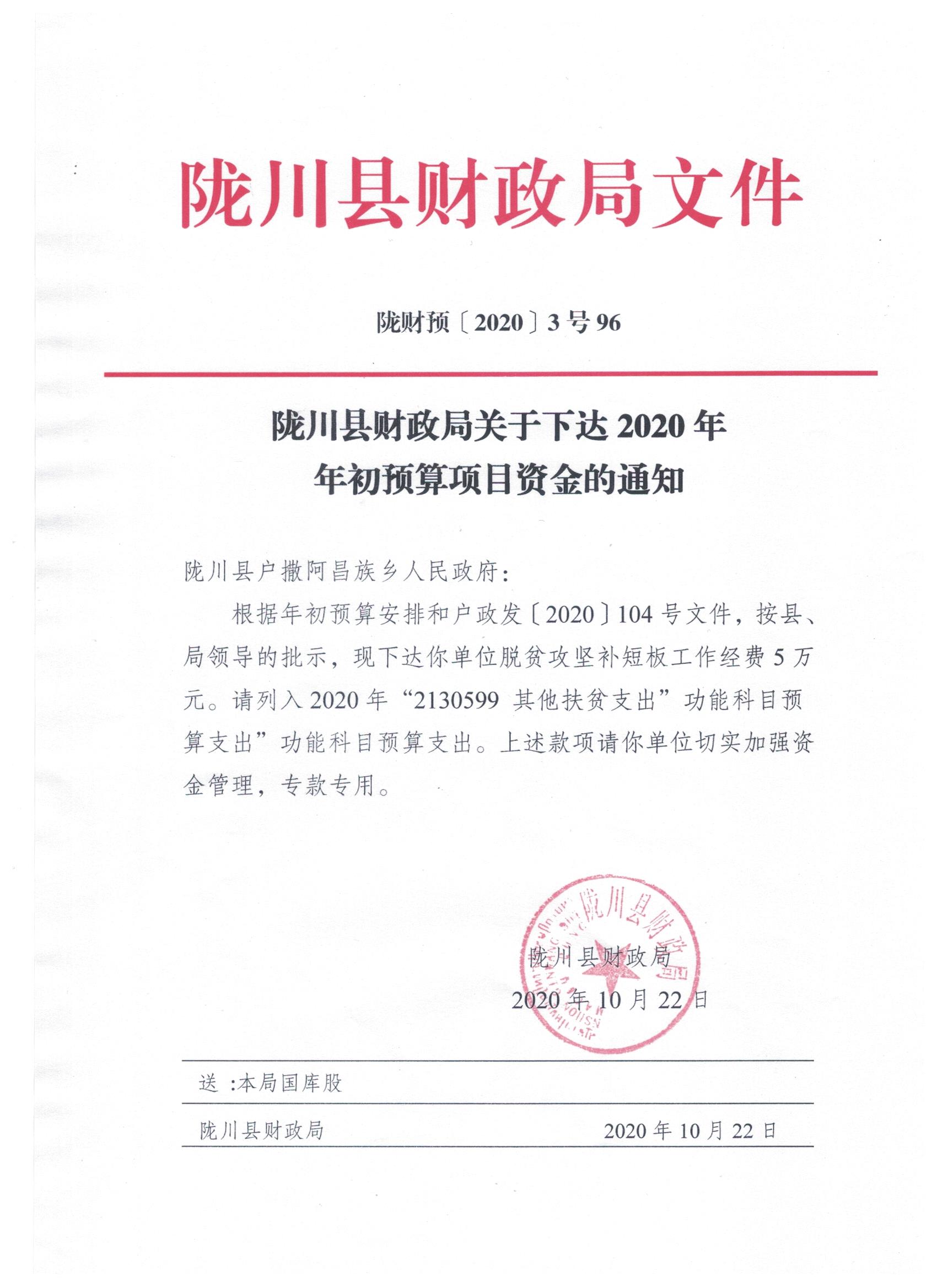 文件名3:陇川县财政局关于下达2020年年初预算项目资金的通知
