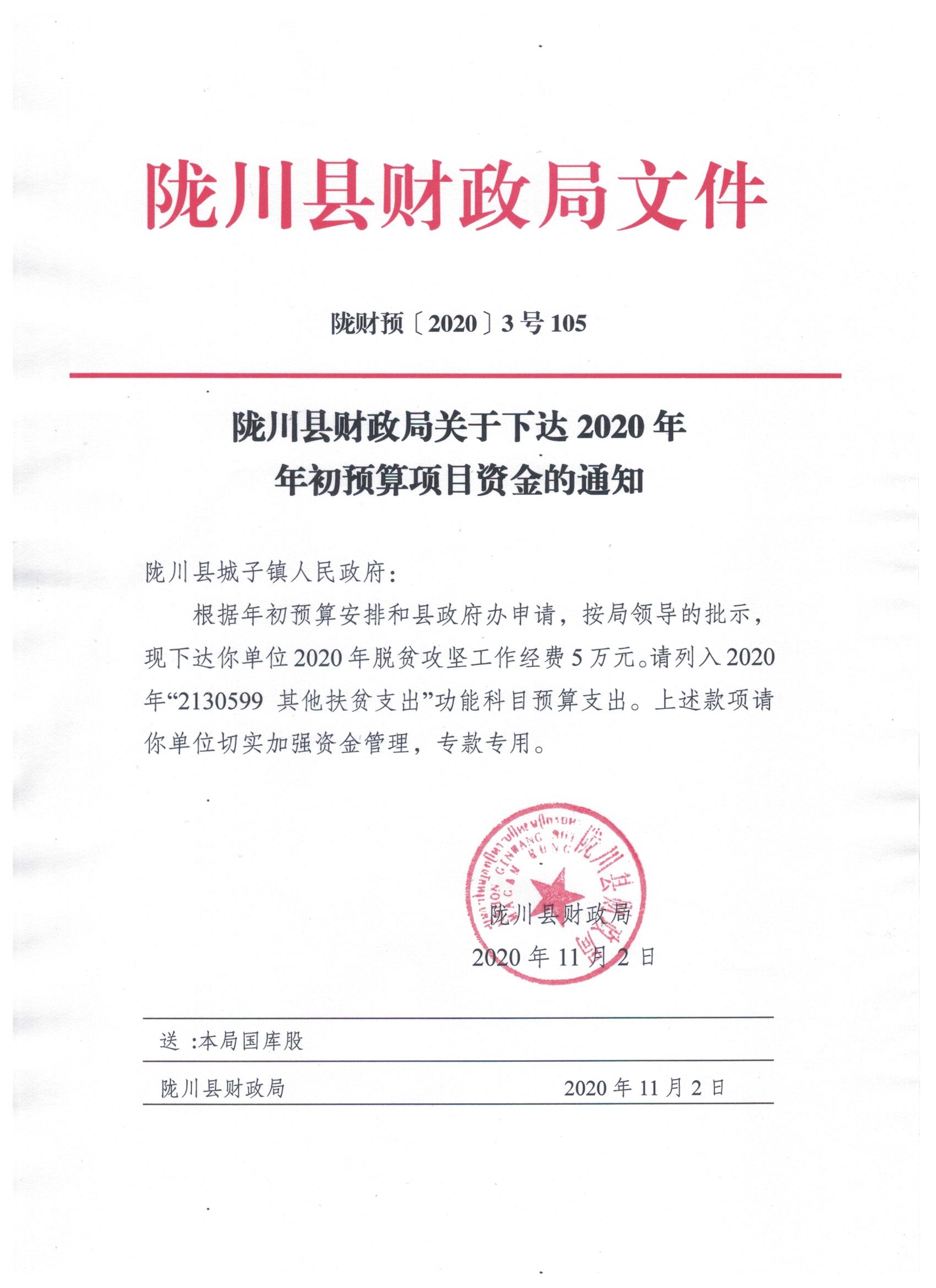 文件名5:陇川县财政局关于下达2020年年初预算项目资金的通知
