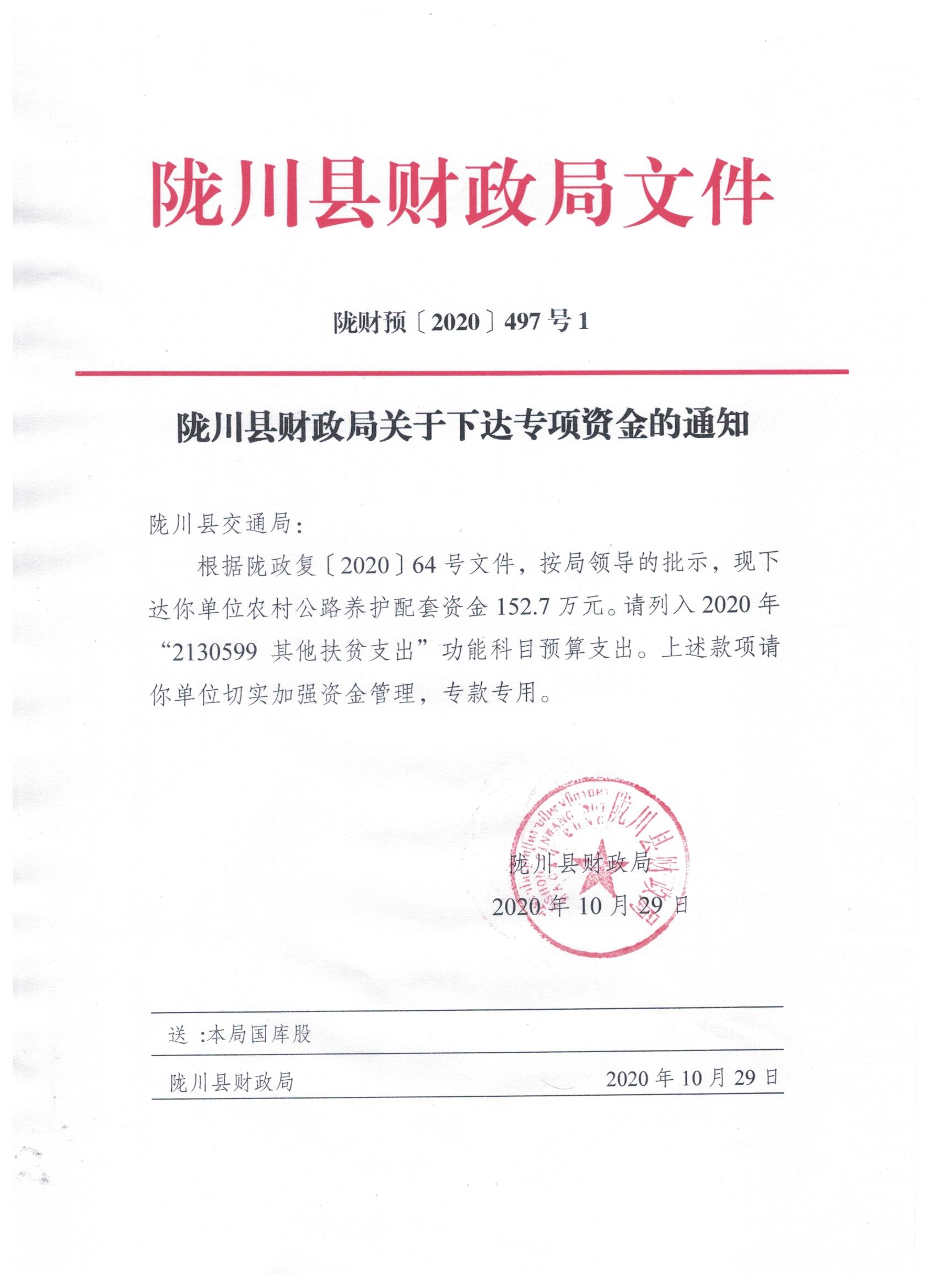 文号:陇财预〔2020〕497号1