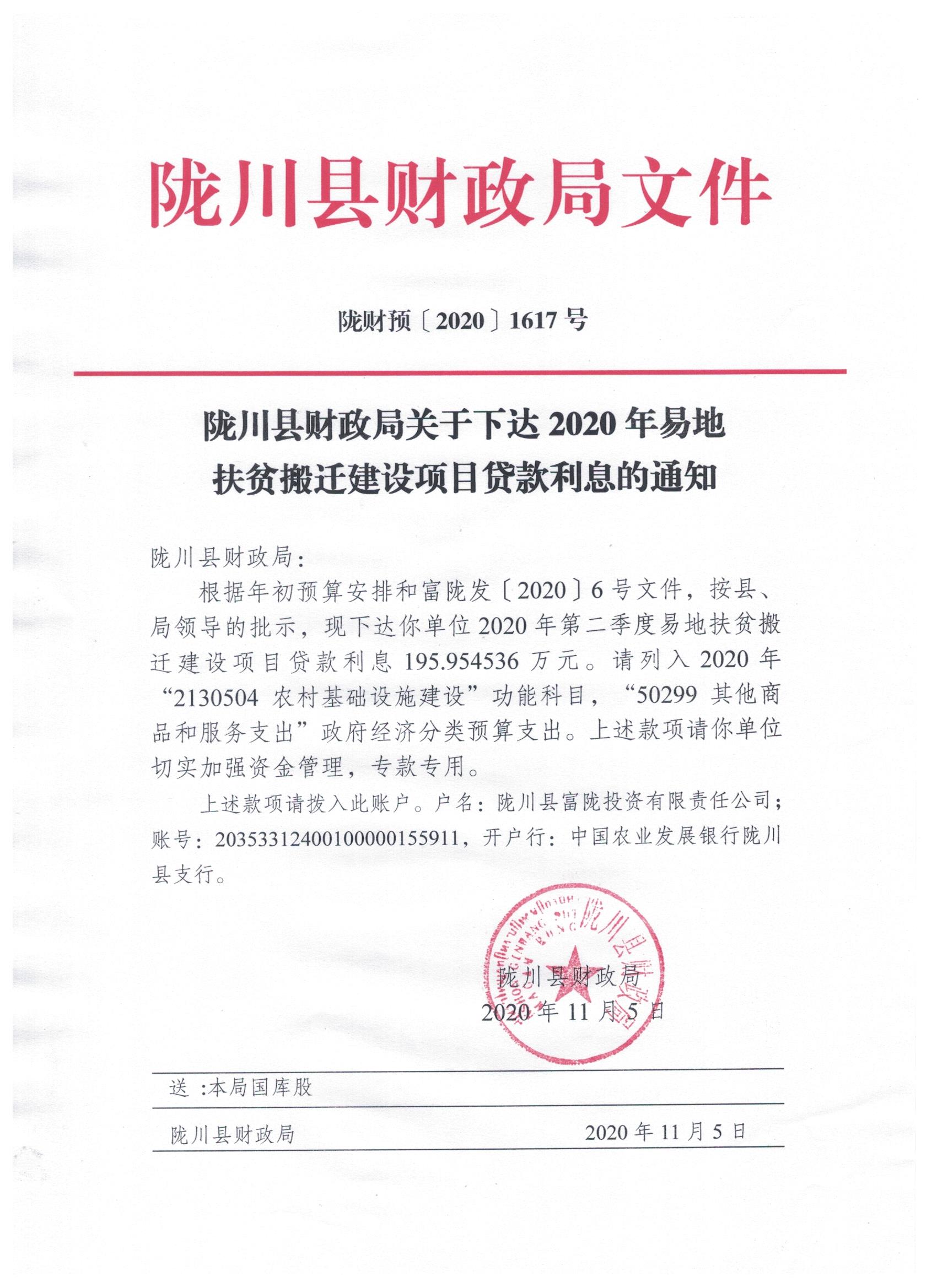 文件名14:陇川县财政局关于下达2020年易地扶贫搬迁建设项目贷款利息的通知