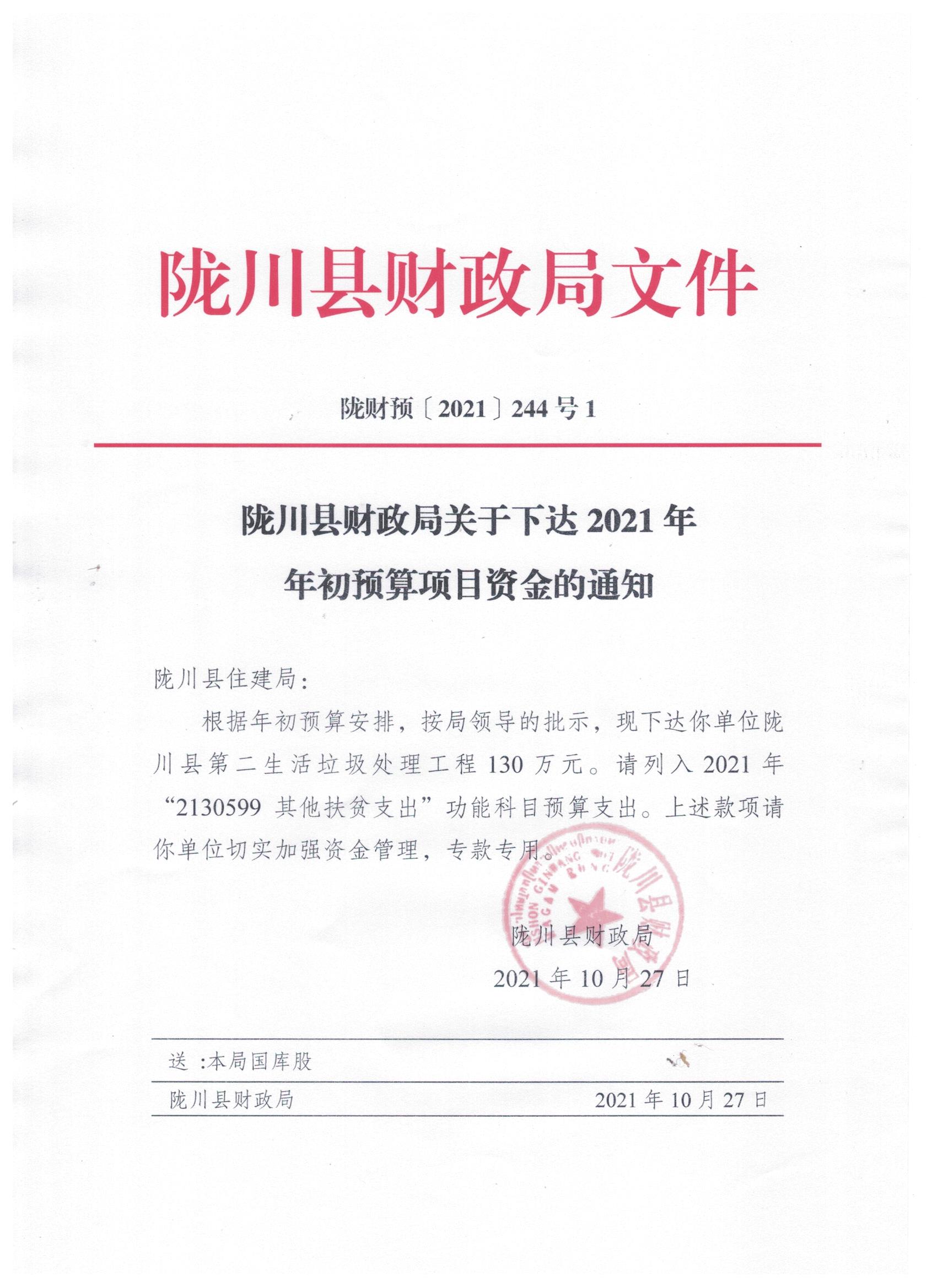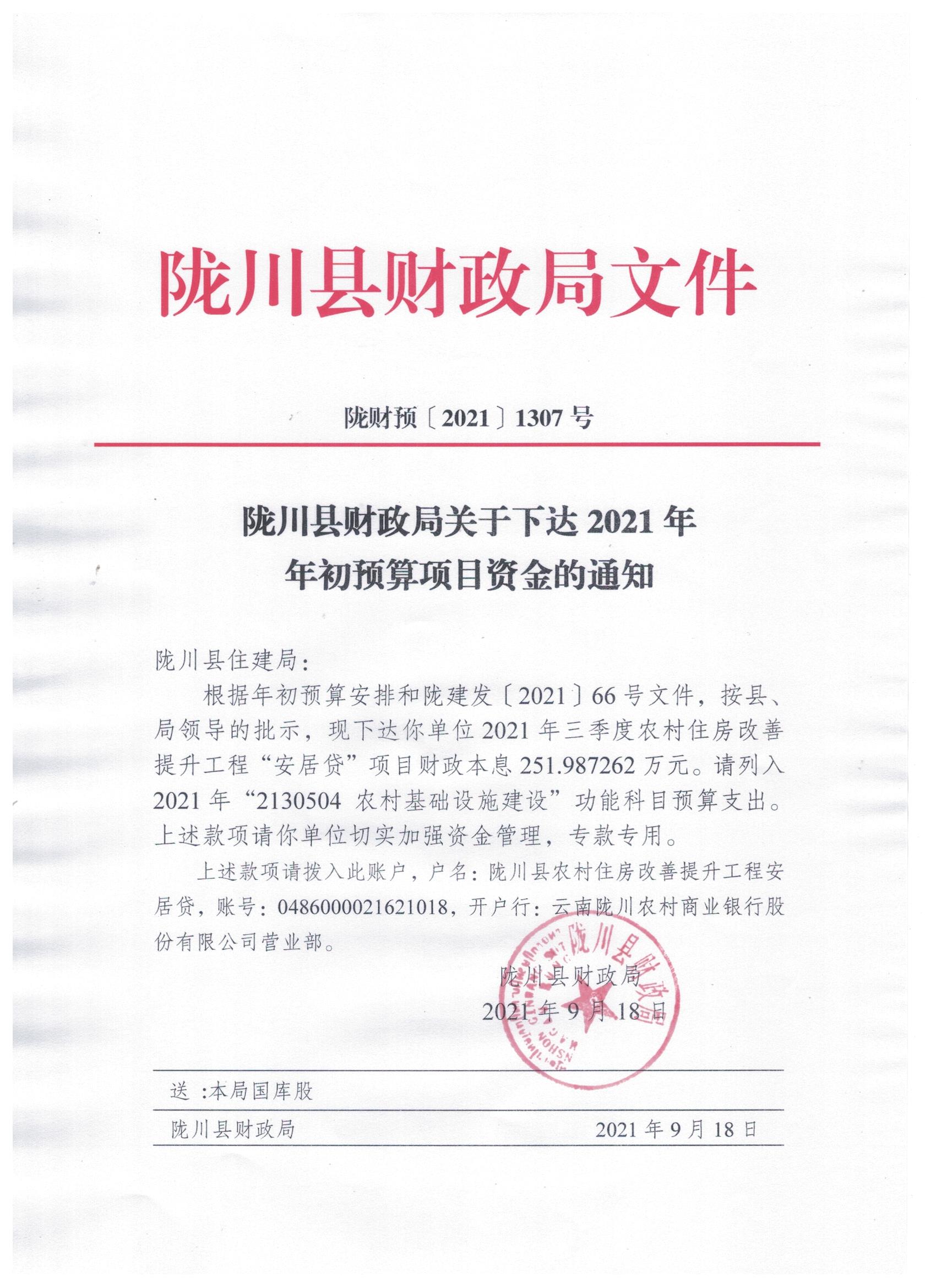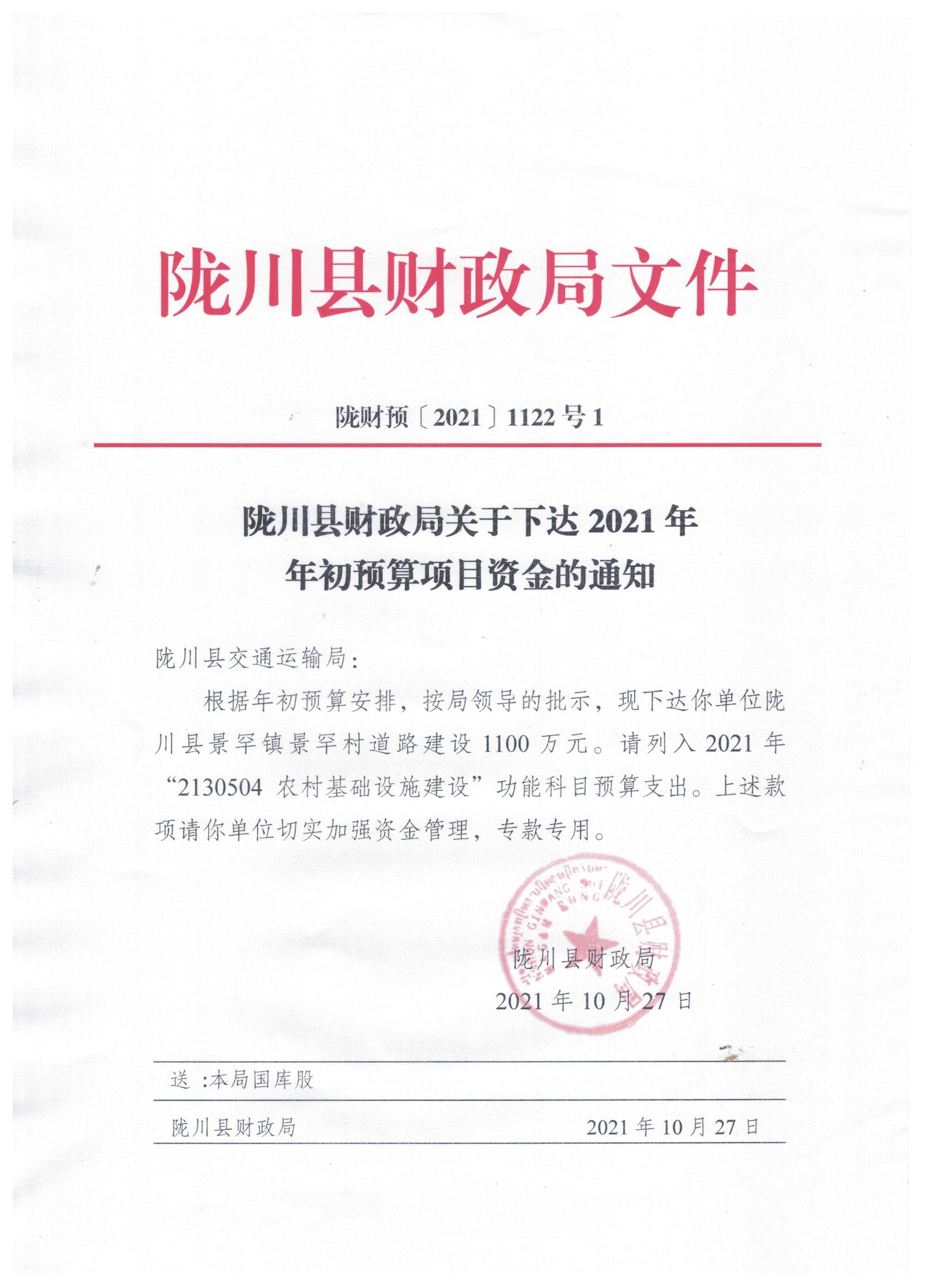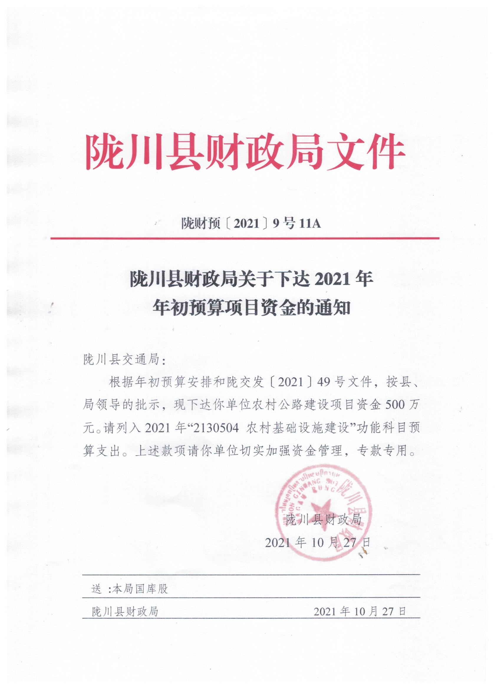文件名1:陇川县财政局关于下达2021年年初预算项目资金的通知