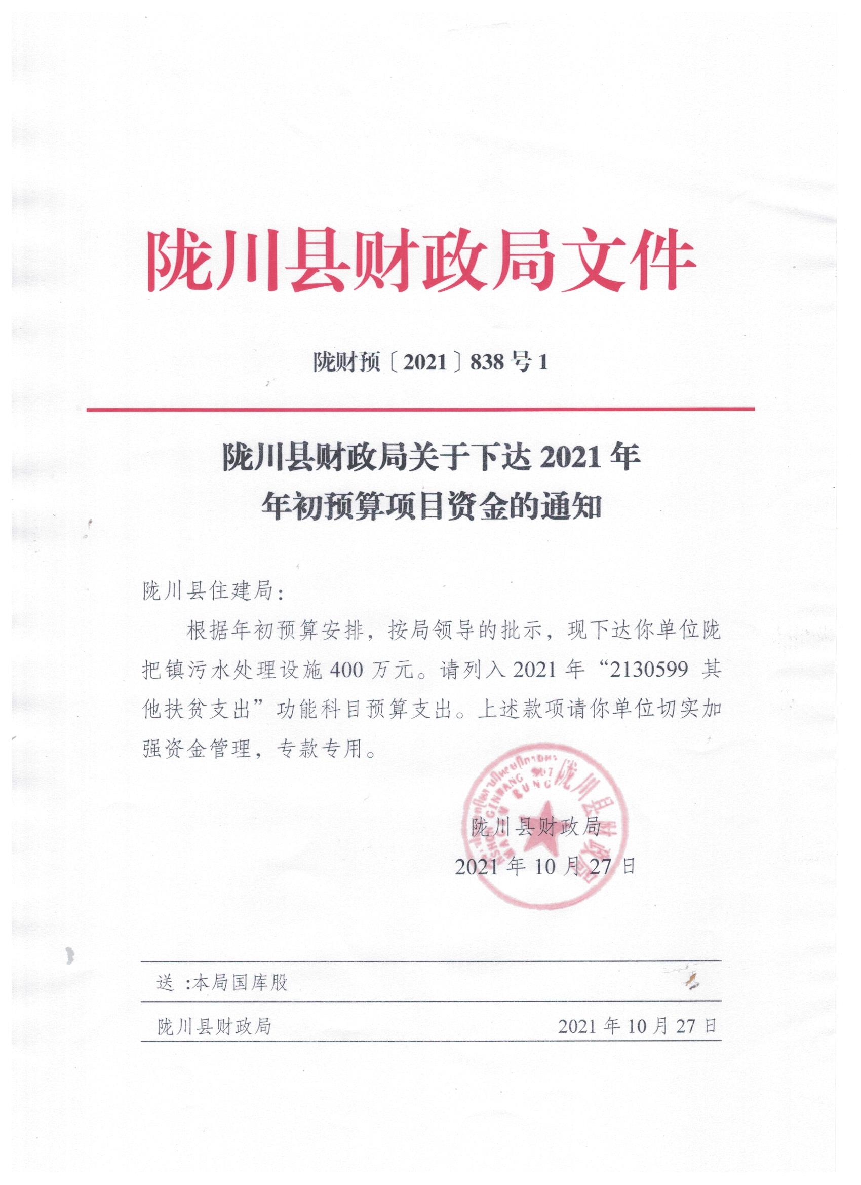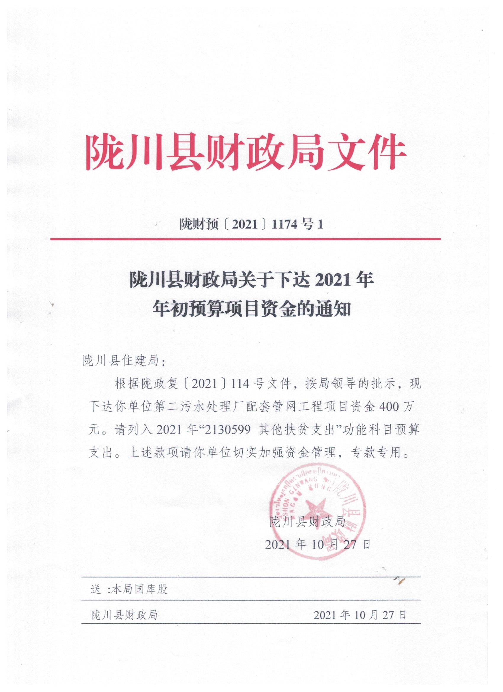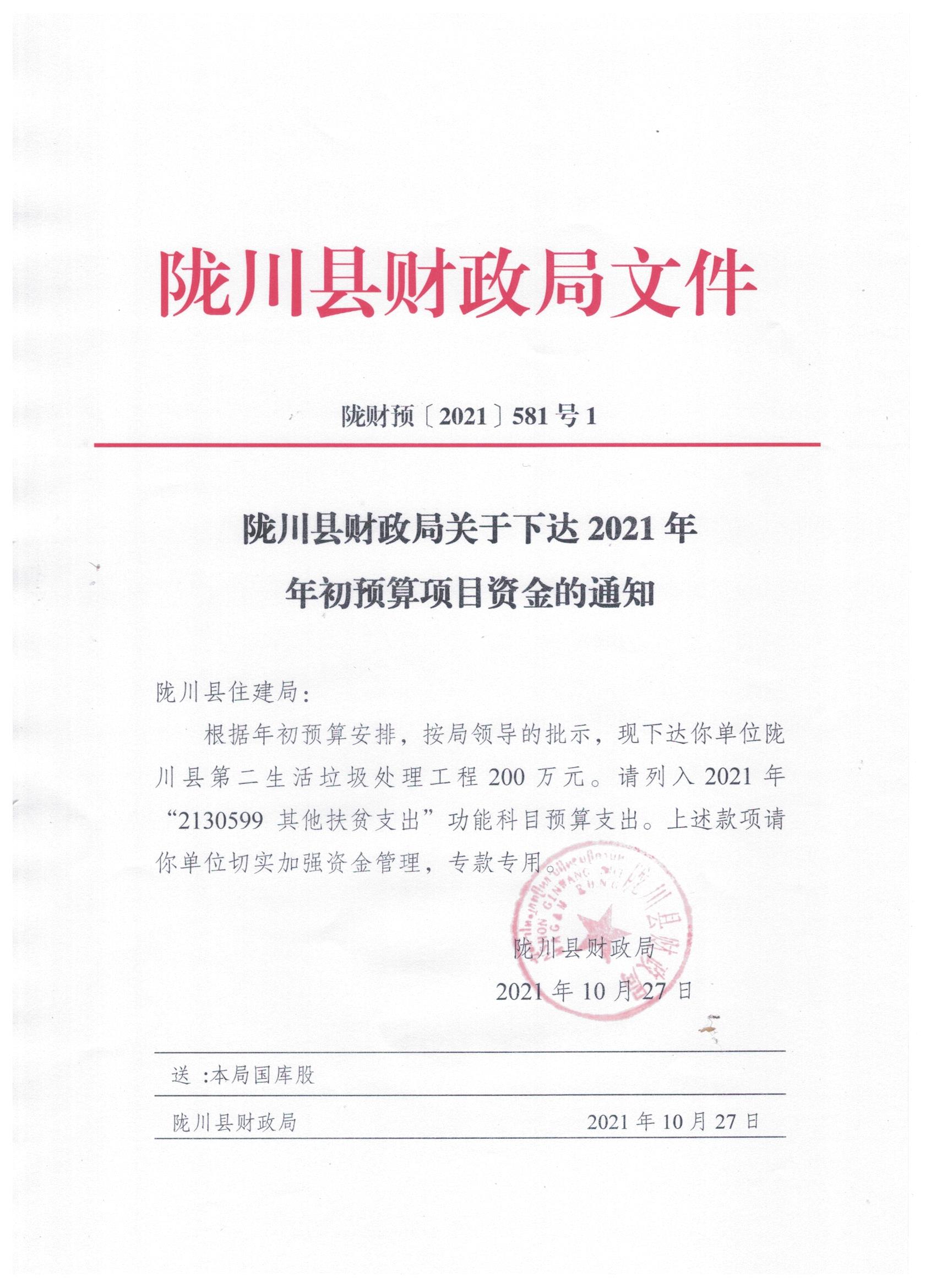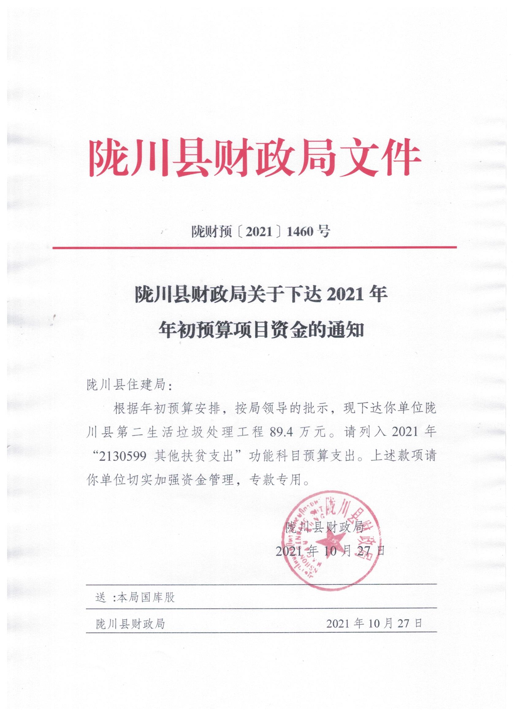 文件名1:陇川县财政局关于下达2021年年初预算项目资金的通知