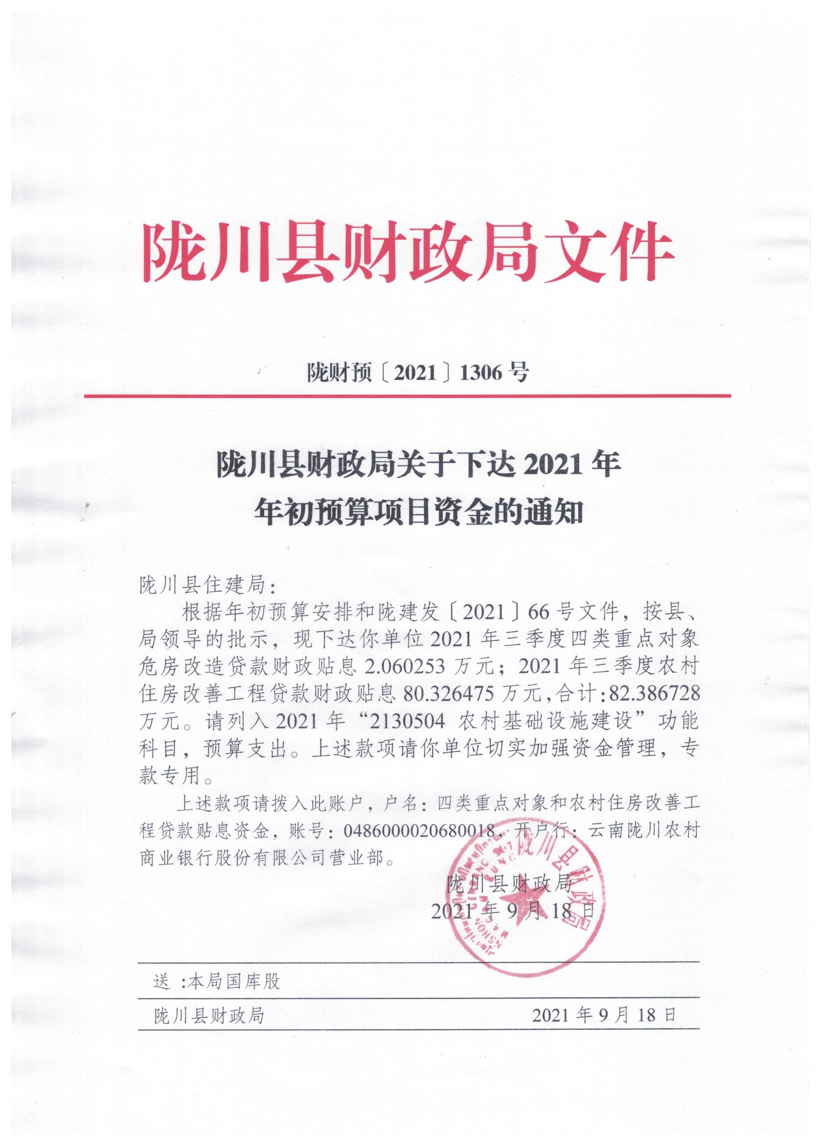 文件名6:陇川县财政局关于下达2021年年初预算项目资金的通知