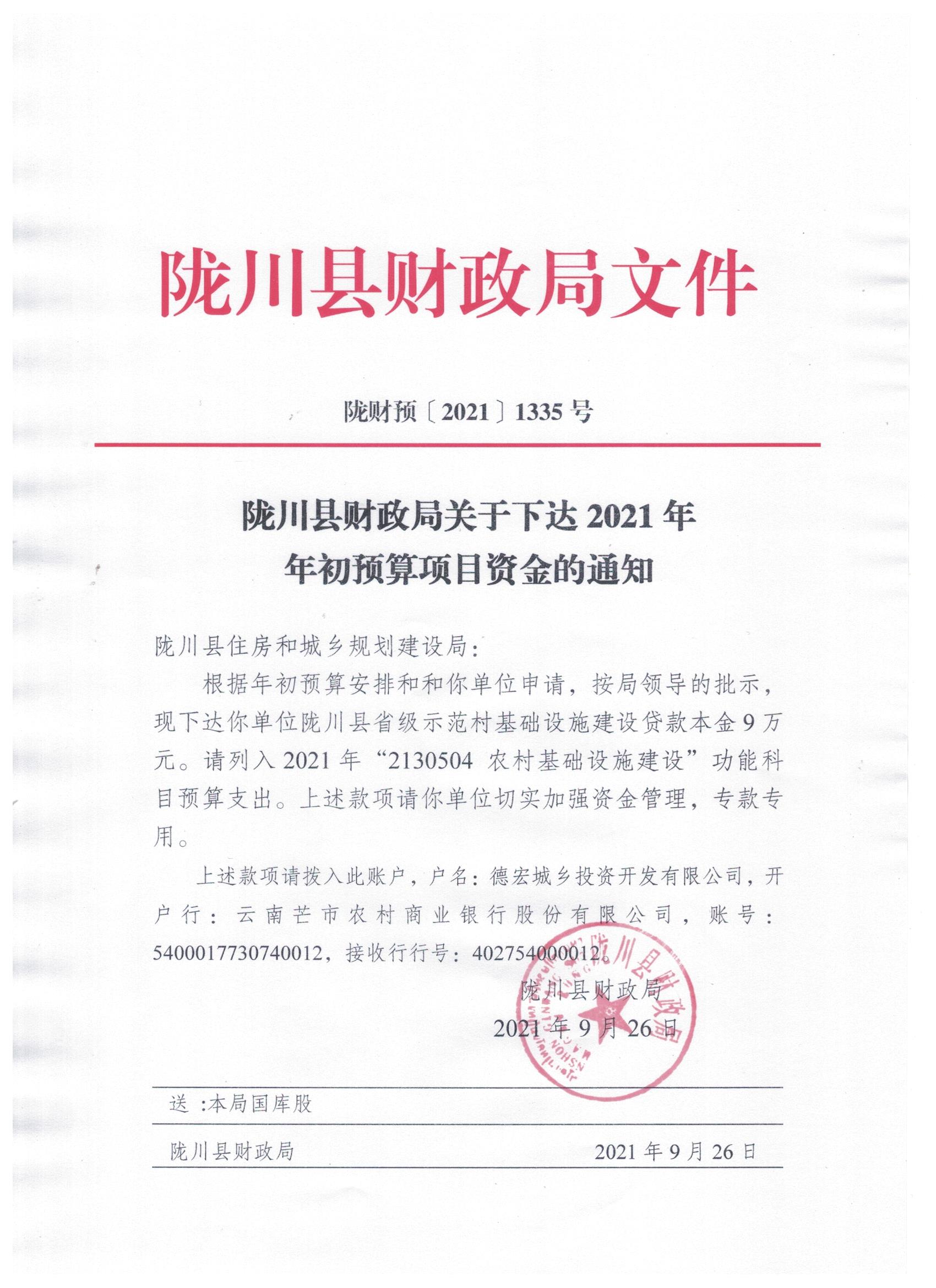 文件名7:陇川县财政局关于下达2021年年初预算项目资金的通知