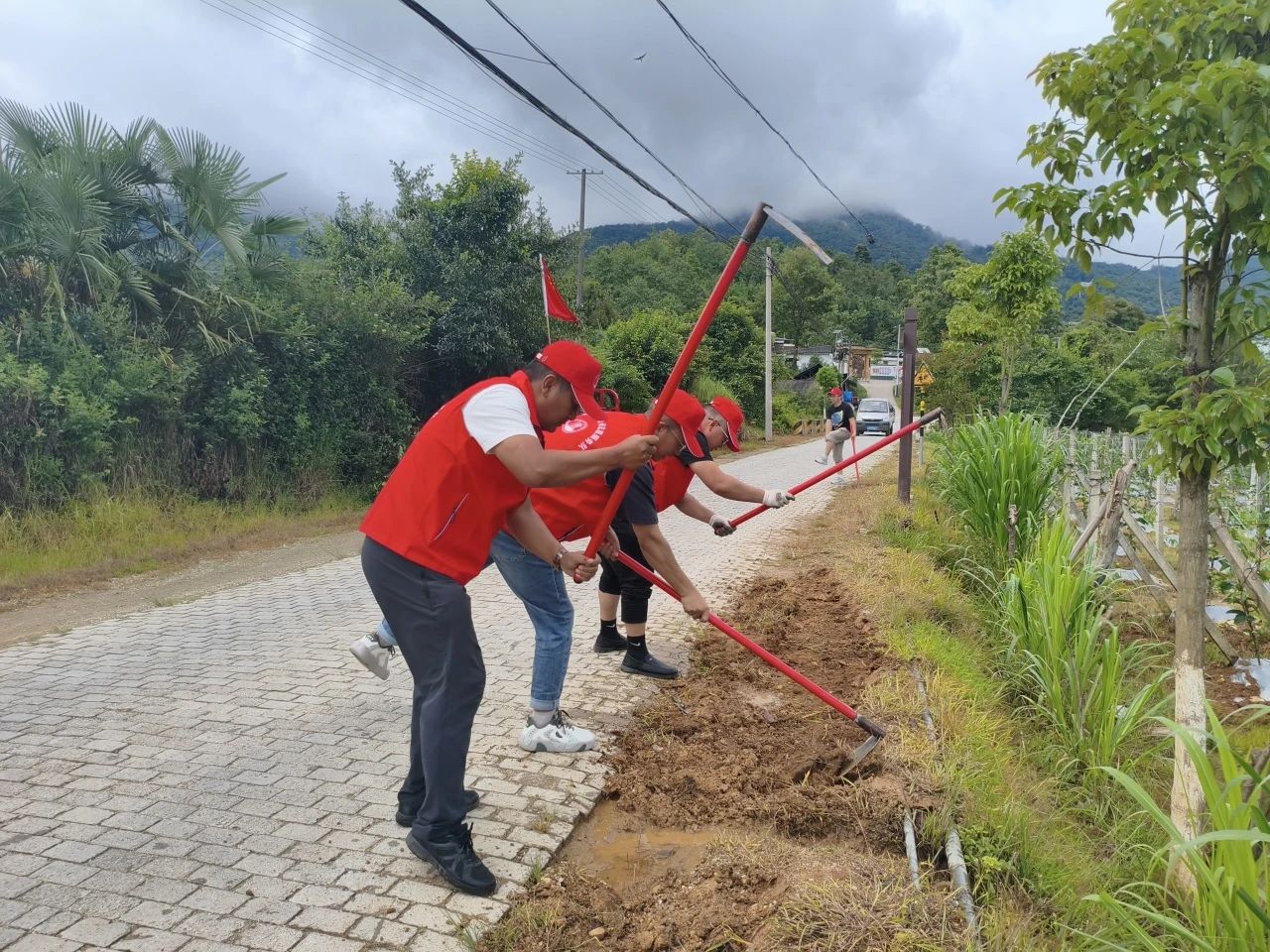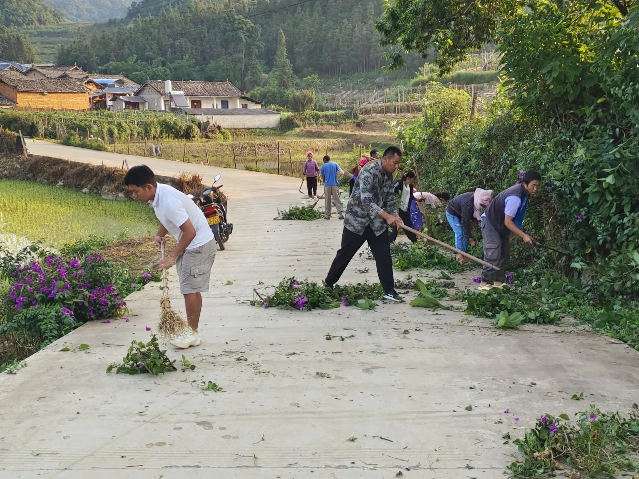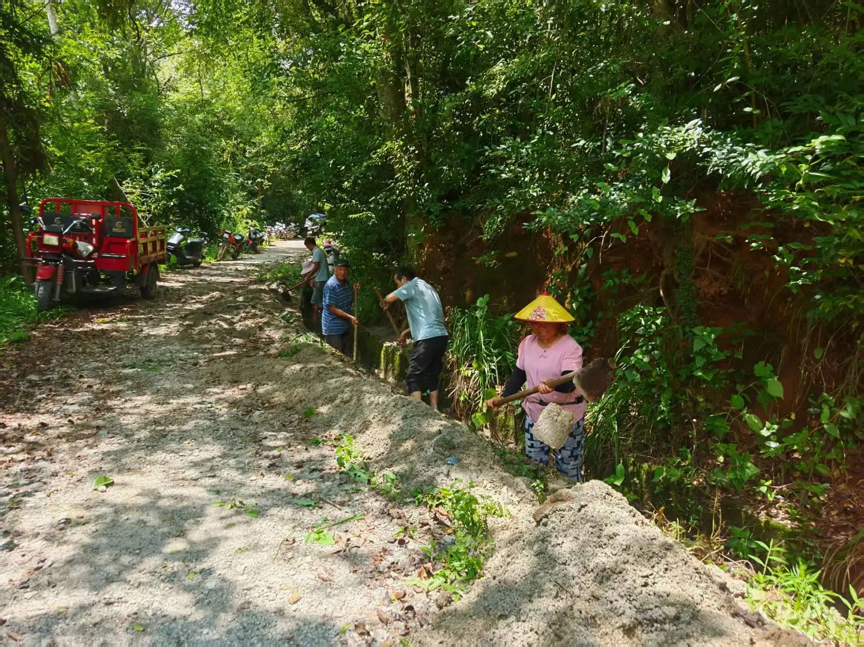活动启动后,各村纷纷行动起来。由党支部牵头、党员带头清理排水沟淤泥、栅栏杂草、路面落叶垃圾等。大家分工明确,有的扛起割草机、锄头、铁锹,合力铲除路面凸起的石块;有的则拿着镰刀,仔细清理路肩疯长的杂草;孩子们也不闲着,提着小竹篮跟在大人身后,帮忙捡拾散落的垃圾。大家齐心协力,凝聚起群众共建共治共享的强大合力,完成了79条、104.501公里的乡村道路养护。
