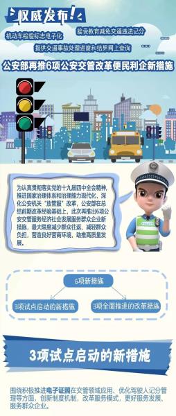 一、试点机动车检验合格标志电子化。群众在办理完成车辆登记、检验业务后,可以通过互联网交通安全综合服务管理平台或者“交管12123”手机APP查看、下载检验标志电子凭证,车辆不需要再粘贴纸质检验标志,免去粘贴麻烦,公安交管部门不以未放置检验标志为由处罚。在汽车租赁、抵押、交易、交通事故保险理赔等领域,当事人、企业可以使用手机APP读取检验标志电子凭证信息,便利群众办事,服务企业发展。2020年3月1日起,北京、天津、上海、重庆、哈尔滨、南京、杭州、宁波、济南、株洲、深圳、海口、成都、贵阳、玉溪、乌鲁木齐等16个城市先行试点。