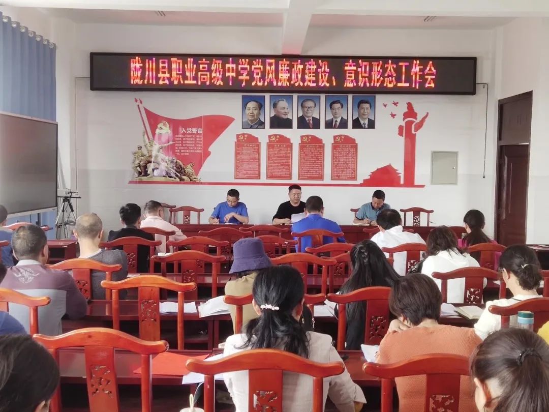 2023年3月13日,陇川县职业高级中学召开党风廉政建设、意识形态工作、师德师风建设工作推进会。会议由学校党支部书记、校长李继龙同志主持。