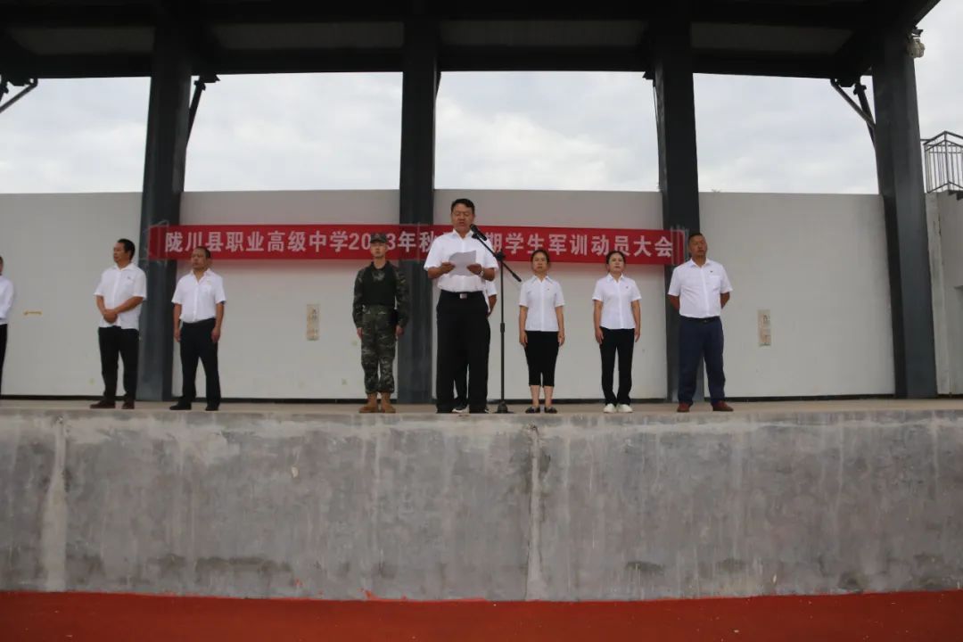 军训动员大会上,学校党支部书记 校长李继龙作了重要讲话,李校长要求:一要敢于吃苦,发扬“掉皮掉肉不掉队,流血流汗不流泪”的精神。二要严守纪律,严格要求自己,严格遵守训练规定,一切行动听指挥。三要虚心学习,珍惜来之不易的学习机会,学习军队的好思想、好作风、好传统,把军训中的收获化为学习的动力。四要牢记安全,牢固树立“安全第一”的思想,切实提高自我保护意识,确保安全参训。