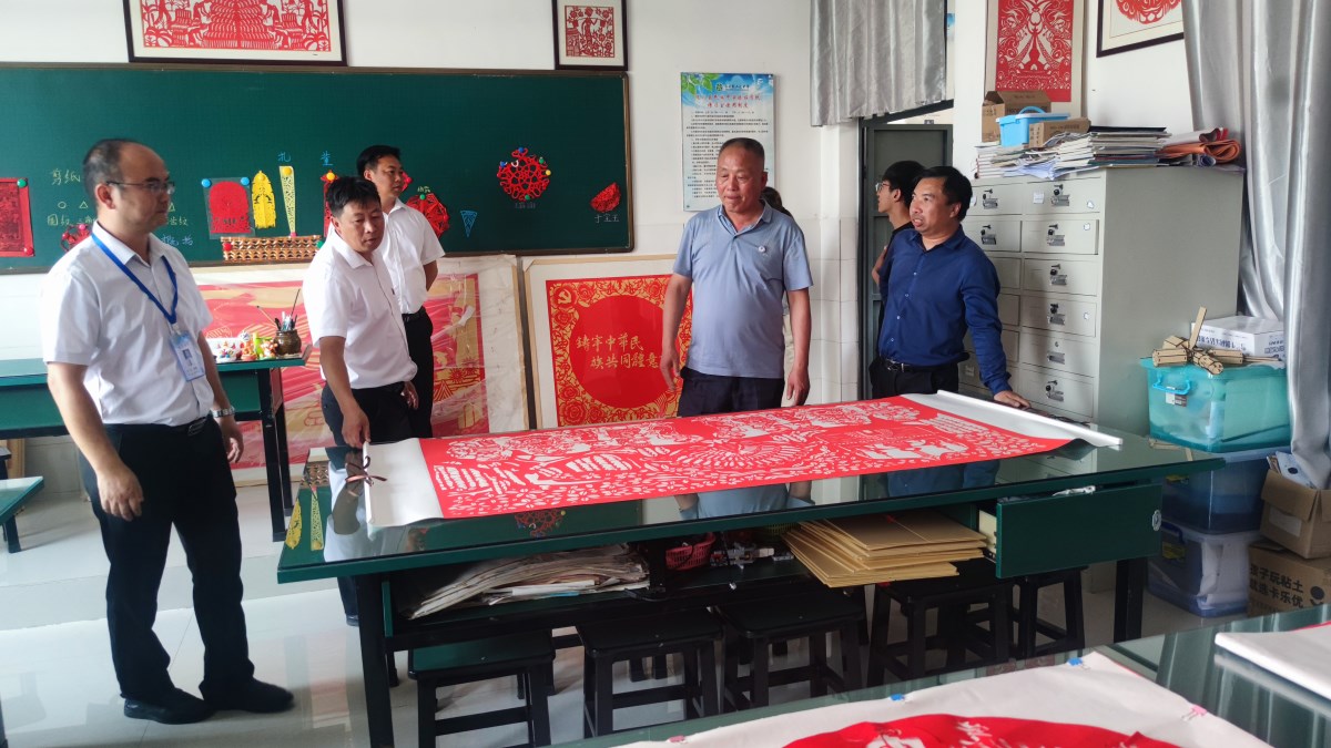 调研组一行实地走访了美术手工室、剪纸传习室和心理咨询室,观看同学们做的手工和剪纸作品,了解心理健康教室的环境布置、心理疏导工具使用状况和实习心理教师、体育教师的工作生活,勉励他们要努力提升自己,注重经验的积累,多向身边优秀教师学习教学技能。