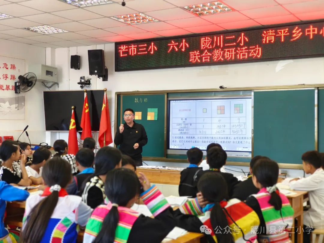 第三节课由芒市第六小学(属于三小学区)教学副校长万宏龙老师执教六年级数学《数与形》。万老师善于用诙谐幽默的语言营造氛围,让课堂紧张热烈又有条不紊。他的课别具一格,有独特的魅力,深得好评。
