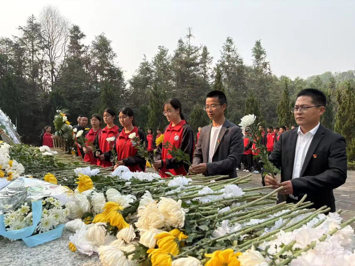 接着,党委书记王宗伟发表讲话,他缅怀革命英烈,强调要铭记历史、传承精神,鼓励同学们心怀感恩,紧握历史接力棒,勇担时代使命。之后,团员代表张宇程发言,表达新时代青年传承红色基因,努力学习,报效祖国的决心。最后,全体人员依次向先烈敬献鲜花,表达对革命先辈的敬仰。