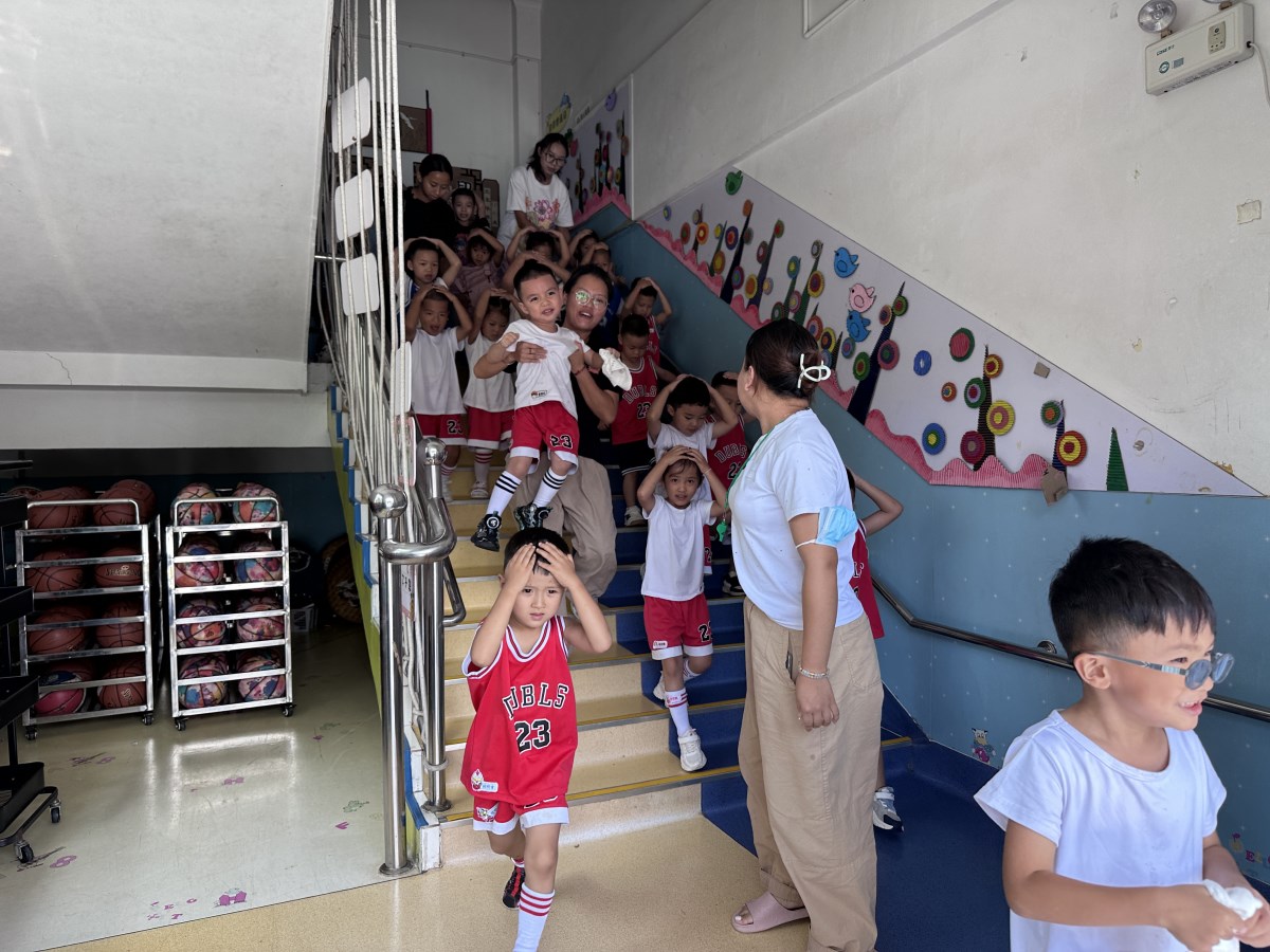 演练开始前,各班教师精心组织,通过生动的情景模拟、趣味动画讲解等多种形式,向幼儿深入浅出地普及地震避险的基本常识,细致示范“伏地、遮挡、手抓牢”这一关键避险动作,帮助孩子们充分理解并掌握应急防护要领。同时,教师们还结合班级实际情况,明确疏散路线和安全集合地点,确保每位幼儿心中有数、行动有序。随着急促的警报声划破校园宁静,地震应急疏散演练正式拉开帷幕。在教师的沉着引导下,孩子们迅速反应,双手抱头、弯腰低身,按照所学知识迅速躲入课桌下方等安全区域,动作规范、井然有序。当第二次警报响起,全体师幼立即按照预定疏散方案,沿着安全通道快速、有序地撤离教室,稳步前往操场空旷地带集结。抵达安全区域后,各班教师第一时间清点人数,确认无遗漏,并迅速向园所负责人汇报情况。