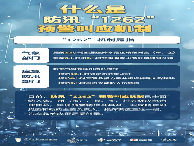 防汛“1262”预警叫应机制是我省防汛救灾中的一项创新举措,旨在通过精细化的气象预报与及时有效的应急响应联动,提升对暴雨、强对流天气等气象灾害的防范应对能力,为保障人民群众的生命安全发挥了重要作用。