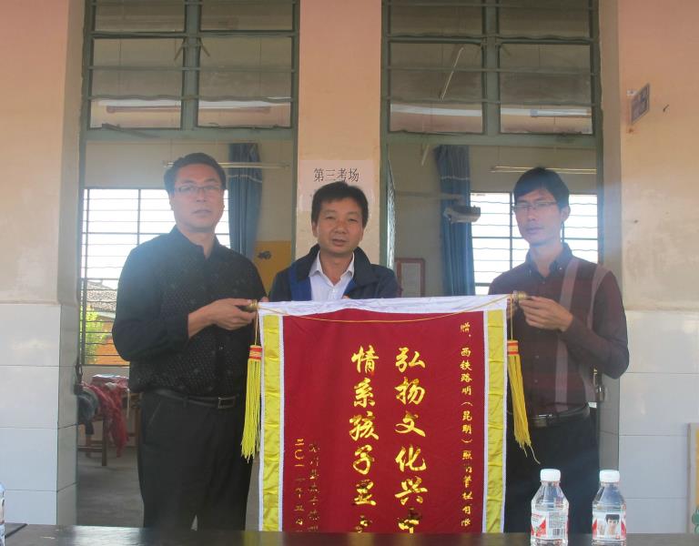 捐赠仪式上,我局与姐乌小学对昆明西铁路明照明管理有限公司的爱心义举表示衷心的感谢。姐乌小学领导现场赠送锦旗以示友好,姐乌小学的学生代表发言致谢,表示今后定会努力学习,回报社会各界的关心。