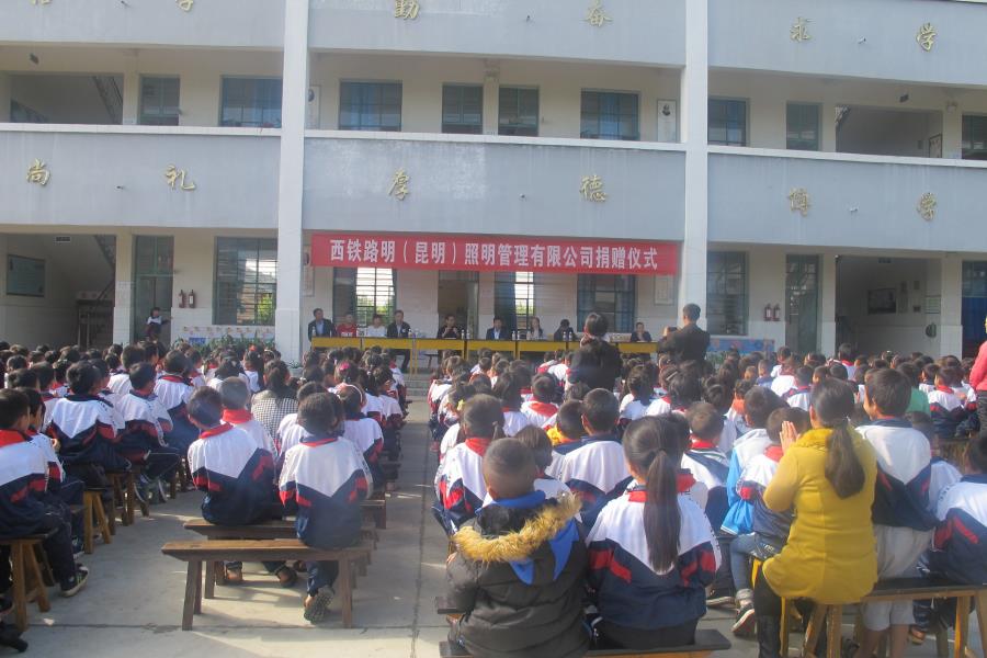11月17日早上9点30分,昆明西铁路明照明管理有限公司管理人员一行从昆明行至陇川,在县教育局工会主席黄宗邦、基教股胡维红等同志的带领下,来到了城子镇姐乌小学,参加了“爱心捐赠仪式”。