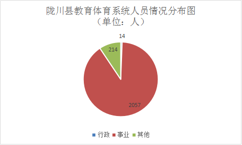 陇川县教育体育部门2019年末实有人员编制2071人。其中:行政人员14人(含行政工勤人员1人),事业人员2057人(含参公管理事业人员0人)。其中:调入57人(县内)、调出31人(县内),退休9人,新招聘10人,死亡3人,辞职2人,开除1人。其他人员214人,其中:200人为农村义务教育学生营养改善计划食堂工勤人员工资,14人为陇川县职业高级中学外聘教师。