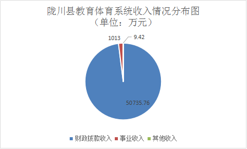 陇川县教育体育系统2019年度收入合计51758.18万元。其中:财政拨款收入50735.76万元,占总收入的98.02%;事业收入1013.00万元(含教育收费0.00万元),占总收入的1.96%;其他收入9.42万元,占总收入的0.02%。与上年44552.31万元对比增加7205.87万元,增长13.92%,主要原因为:新增边境地区转移支付校舍维修建设项目2448.33万元;教育费附加安排改善办学条件投入1498.6万元;云南省义务教育公办学校C级校舍加固改造资金899.92万元;义务教育薄弱环节改善与能力提升资金1133.6万元;体彩公益金项目资金404.01万元;教育基金安排教育投入282.55万元;陇川县第一中学教学综合楼、学生浴室、厕所建设868.84万元;陇川县职业高级中学中餐烹饪实训设备采购项目360万元等。