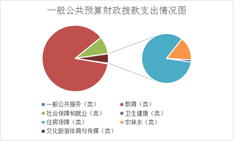 2.教育(类)支出40514.41万元,占一般公共预算财政拨款总支出的86.47%。主要用于教育相关事业支出,如学生营养改善计划,全面改善贫困地区义务教育薄弱学校基本办学条件,中小学校舍改造维修,支持民办学校,用于陇川县第四中学、第五中学建设;在职人员工资发放;学校食堂工勤人员基本工资发放;义务教育阶段学校公用经费;各学龄段困难学生助学金发放等。