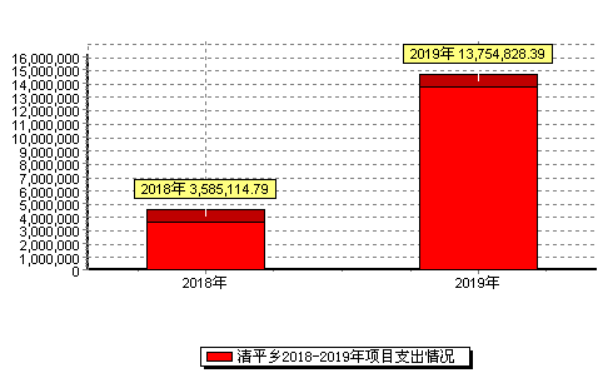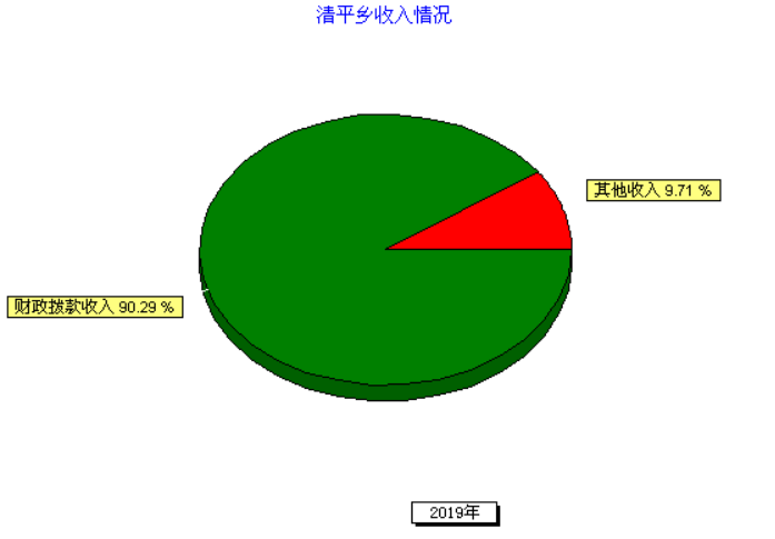 清平乡人民政府2019年度收入合计3030.37万元。其中:财政拨款收入2736.23万元,占总收入的90.29%;上级补助收入0万元,占总收入的0%;事业收入0万元(含教育收费0万元),占总收入的0%;经营收入0万元,占总收入的0%;附属单位缴款收入0万元,占总收入的0%;其他收入294.14万元,占总收入的9.71%。与上年对比增加984.03万元,增长32.47%,增长的主要原因是项目资金增加,主要有:陇财农〔2019〕21号7广外村、广林村弄友村功能提升建设资金296万元;陇财整合〔2019〕21号7蚕桑基地建设资金175万元;陇财整合〔2019〕7号8芒来人饮工程资金120万元等。