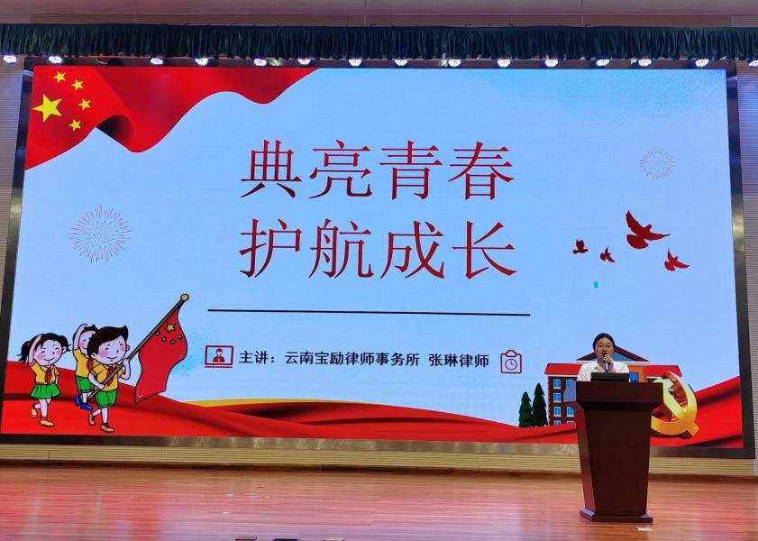 宝励律师事务所张琳律师以《典亮青春 护航成长》为题,向现场师生介绍了《中华人民共和国民法典》的概况、《中华人民共和国民法典》中对于未成年人的划分,以小明举例来讲述了《中华人民共和国民法典》是如何在日常工作生活中为小明保驾护航的,人生之初、成年之后、成家置业、养老继承,从个人到家庭再到社会,《中华人民共和国民法典》都在为我们的生活保驾护航。