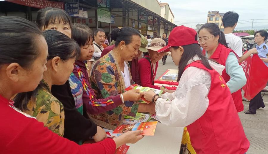陇川县司法局联合普法成员单位在农贸市场开展“抵制高额彩礼 倡导文明婚俗 ”法治宣传活动,向广大群众宣传法律知识,用法治助推移风易俗。