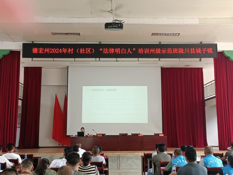 为规范推进我县村(社区)“法律明白人”培育工作,着力培养一支群众身边的普法依法治理工作队伍,6月11日,德宏州司法局联合陇川县司法局到城子镇开展“法律明白人”培训州级示范班,共有70余人参加培训。