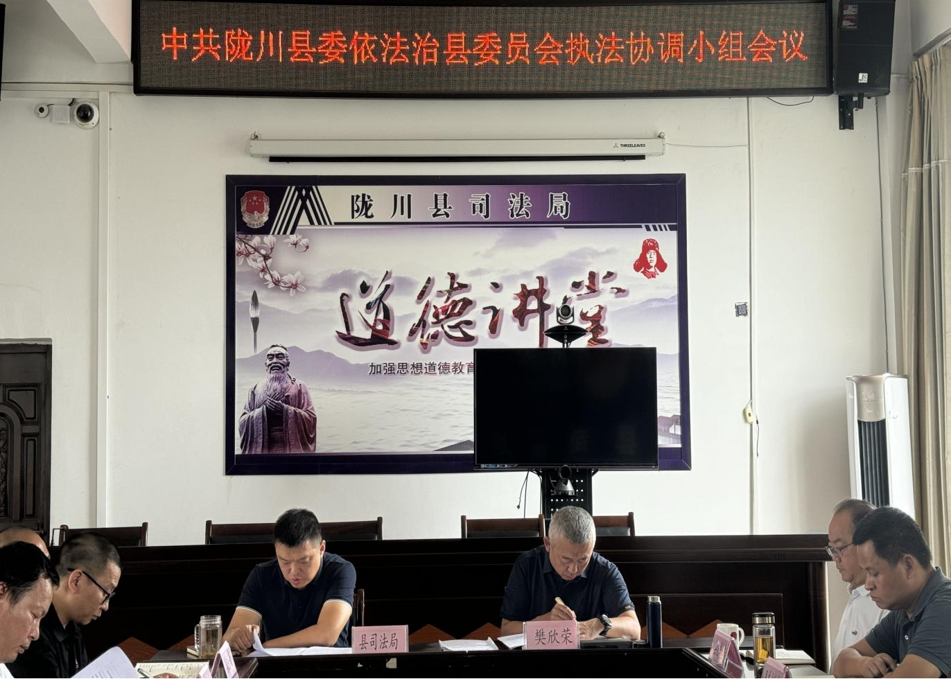 县依法治县执法协调小组组长樊欣荣同志传达学习贯彻党的二十大精神和习近平法治思想,县依法治县执法协调小组副组长王万雷同志就2024年上半年执法协调小组工作开展情况进行通报及针对各行政执法部门存在的问题作出建议和指导。