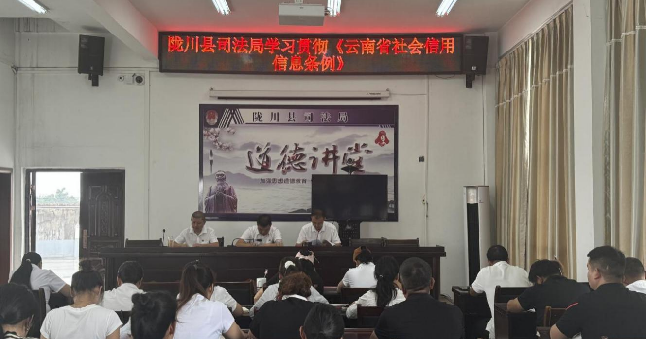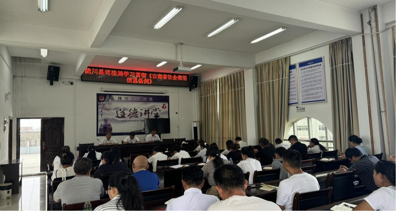为贯彻落实关于做好学习宣传《云南省社会信用条例》的通知,2024年9月2日上午9:00,在局机关五楼会议室召开学习贯彻《云南省信用信息条例》会议,会议由局长王万雷同志主持,会上由副局长赵攀同志领学《云南省信用信息条例》,全体干部职工参加会议。