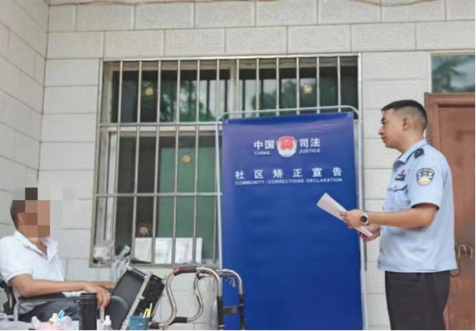 “韩队长,你们来啦,辛苦你们又跑一趟,太感谢了。”近日,社区矫正对象腾某某坐在轮椅上不停地向来家中为其解矫的司法局工作人员道谢。