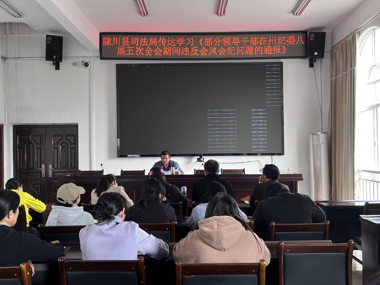 2024年1月16日,县司法局党组成员、副局长官维波主持召开会议,全局干部职工在五楼会议室参加,各司法所人员自行组织学习。会议集中传达学习了县纪委关于转发《关于部分领导干部在州纪委八届五次全会期间违反会风会纪问题的通报》文件精神。