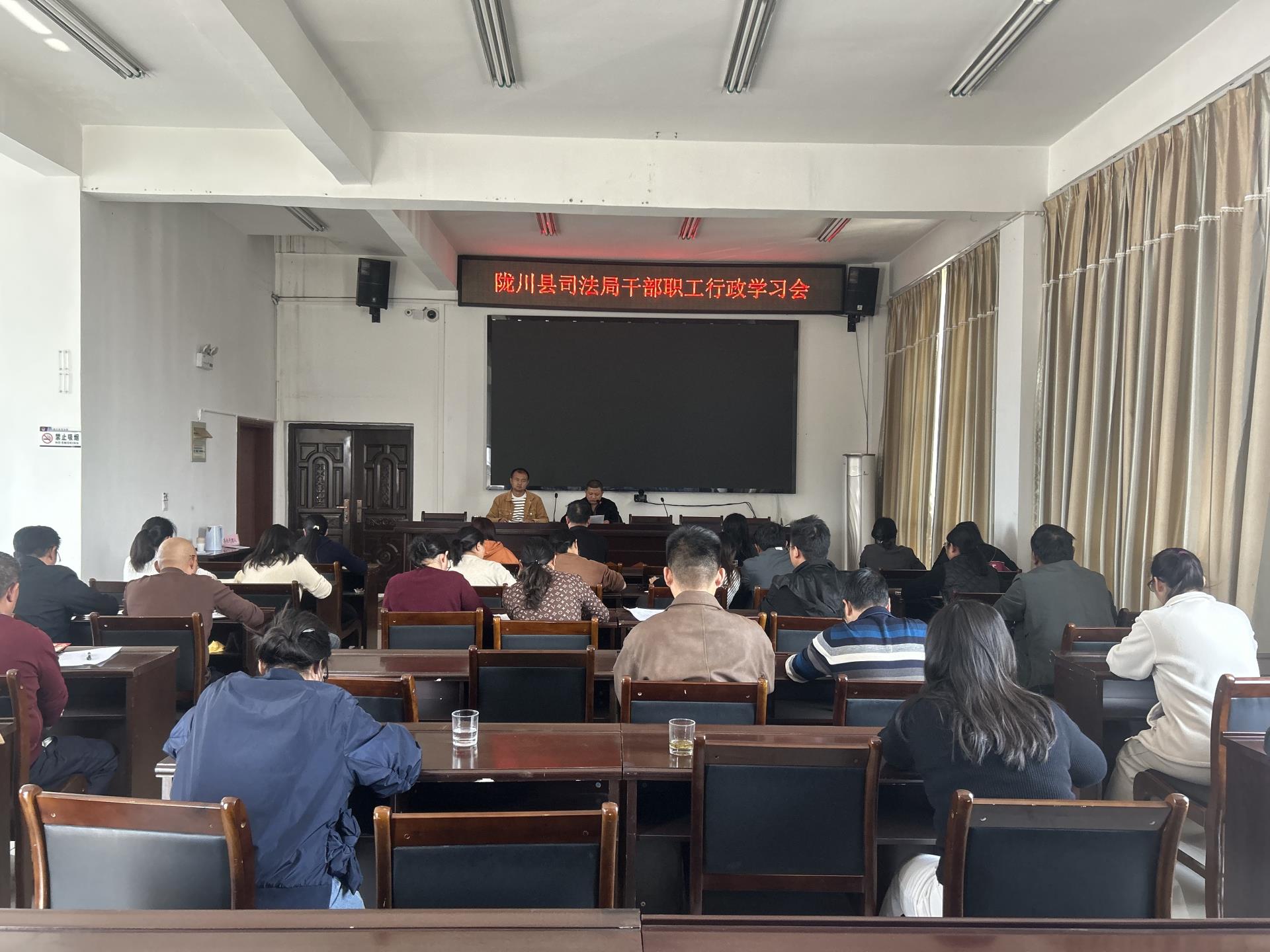 2025年2月28日16:00,在局机关五楼会议室召开干部职工行政学习会,会议由副局长官维波同志主持,全体干部职工参加会议。