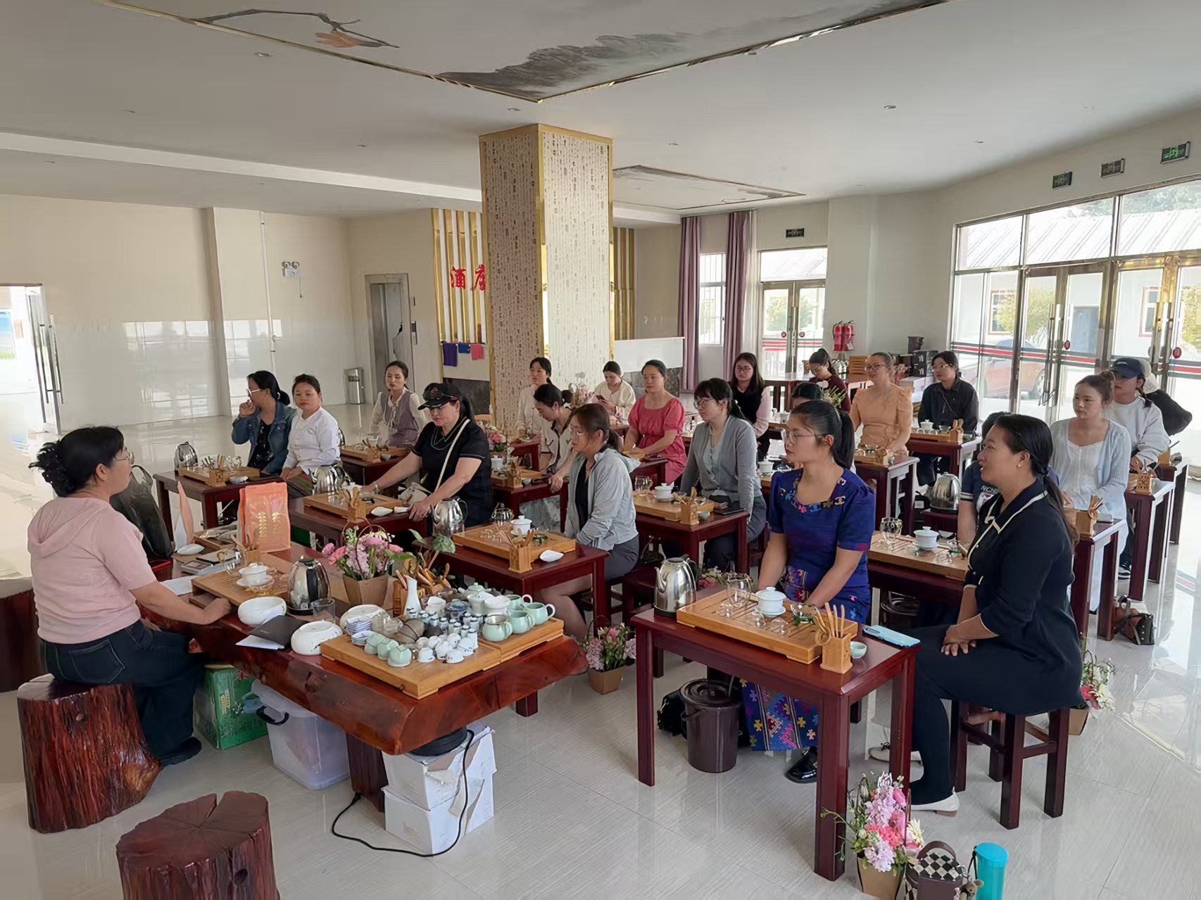 茶韵沁心脾 礼仪传雅意。茶艺体验区茶香袅袅,茶艺师通过温杯、置茶、冲泡等环节,讲解茶文化历史及礼仪规范,演绎茶道“和敬清寂”的东方美学。女职工们学习六大茶类知识,体验盖碗冲泡技法,品茗交流,在茶道美学中感受传统文化的隽永魅力。