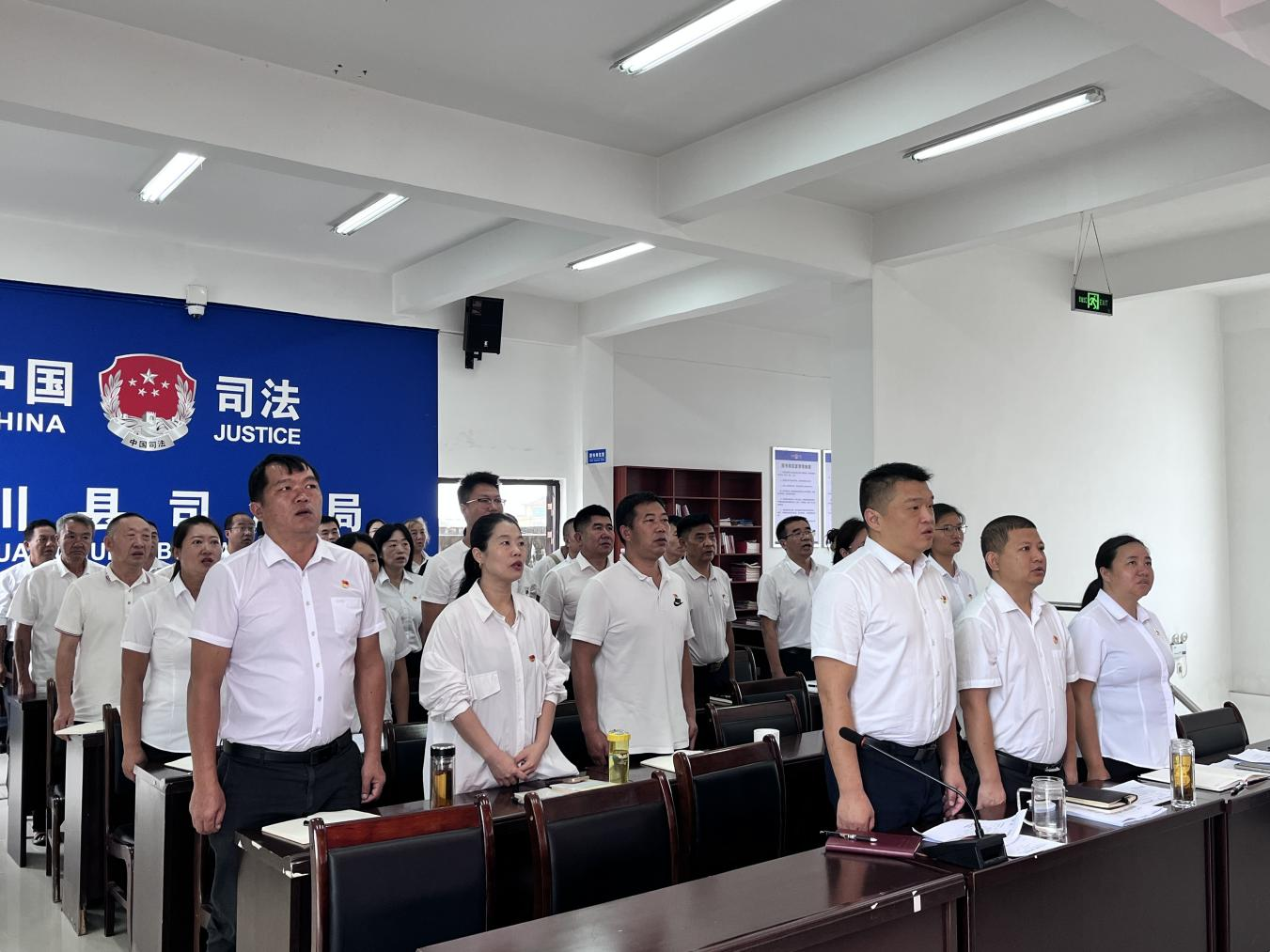 “我志愿加入中国共产党,拥护党的纲领,遵守党的章程,履行党员义务,执行党的决定……随时准备为党和人民牺牲一切,永不叛党。”司法局党总支全体党员整齐列队,庄严地举起右手,在领誓人的带领下共同宣誓,重温入党誓词。铿锵有力的誓言响彻全场,字字千钧,激荡着每一位党员的心灵,时刻警醒大家牢记身份、铭记入党初心。