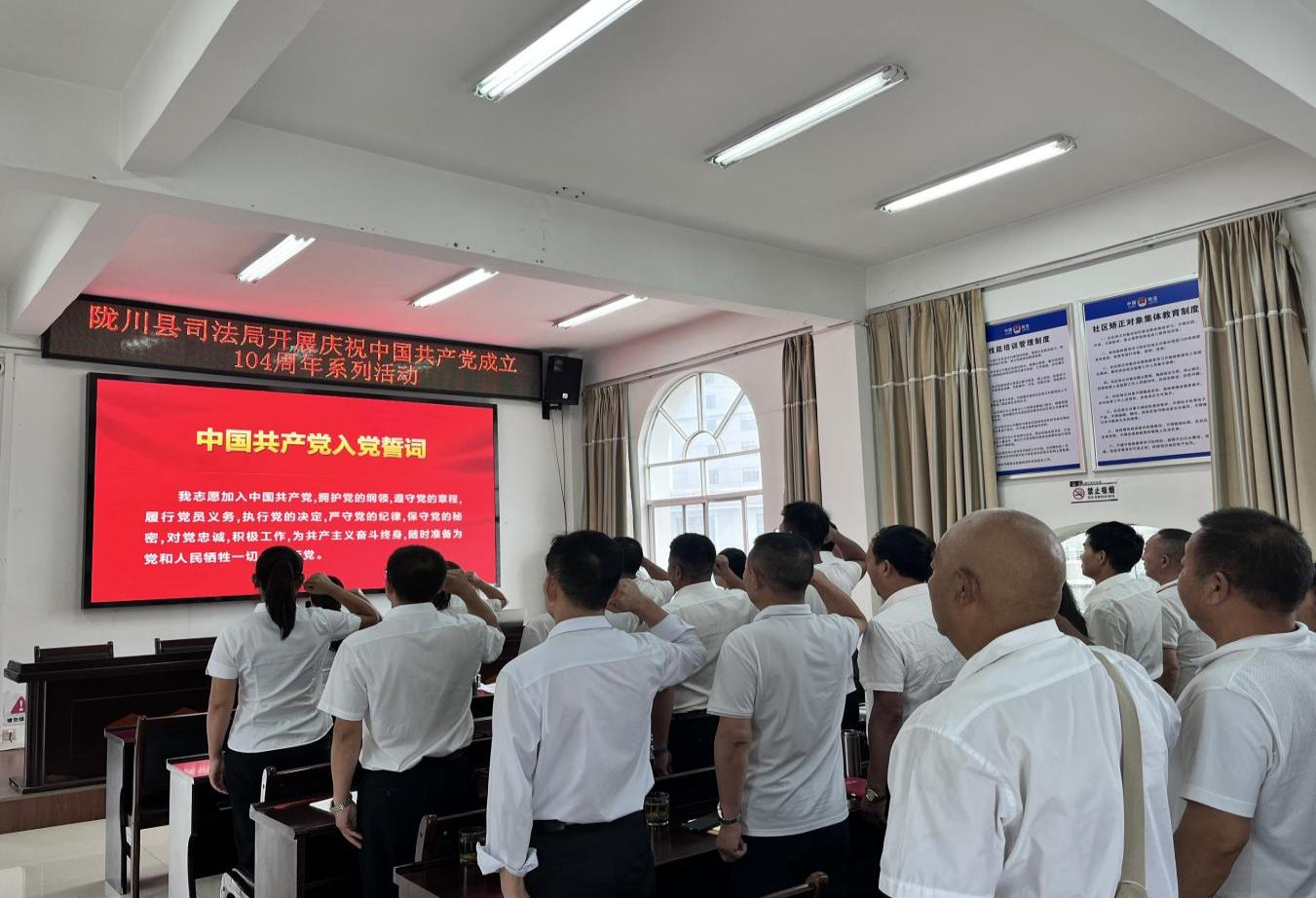 为庆祝中国共产党成立104周年,传承红色基因,激发奋进力量,扎实推进深入贯彻中央八项规定精神学习教育,激励引导党员干部牢记入党初心、弘扬伟大建党精神,推动党的建设和司法行政高质量发展,陇川县司法局党总支开展形式多样的庆“七一”主题党日活动。