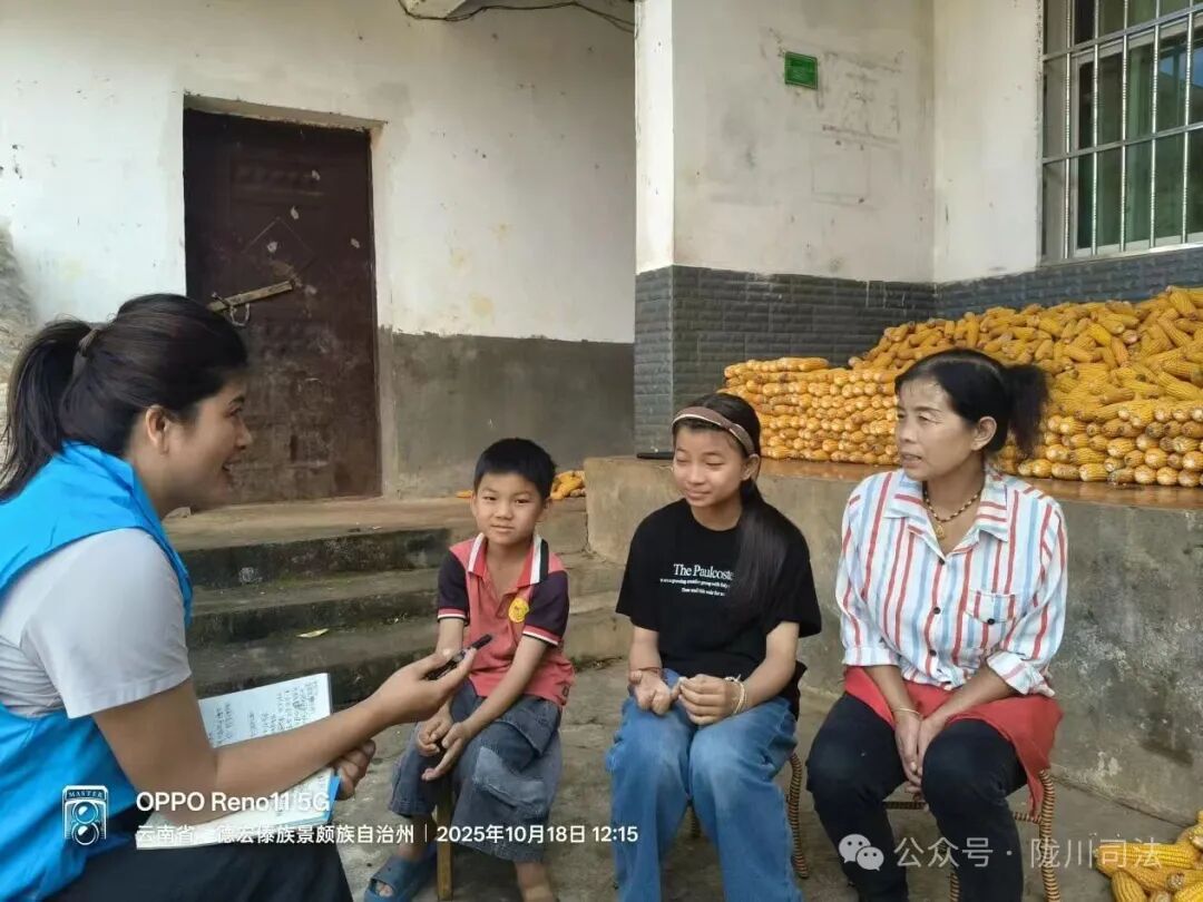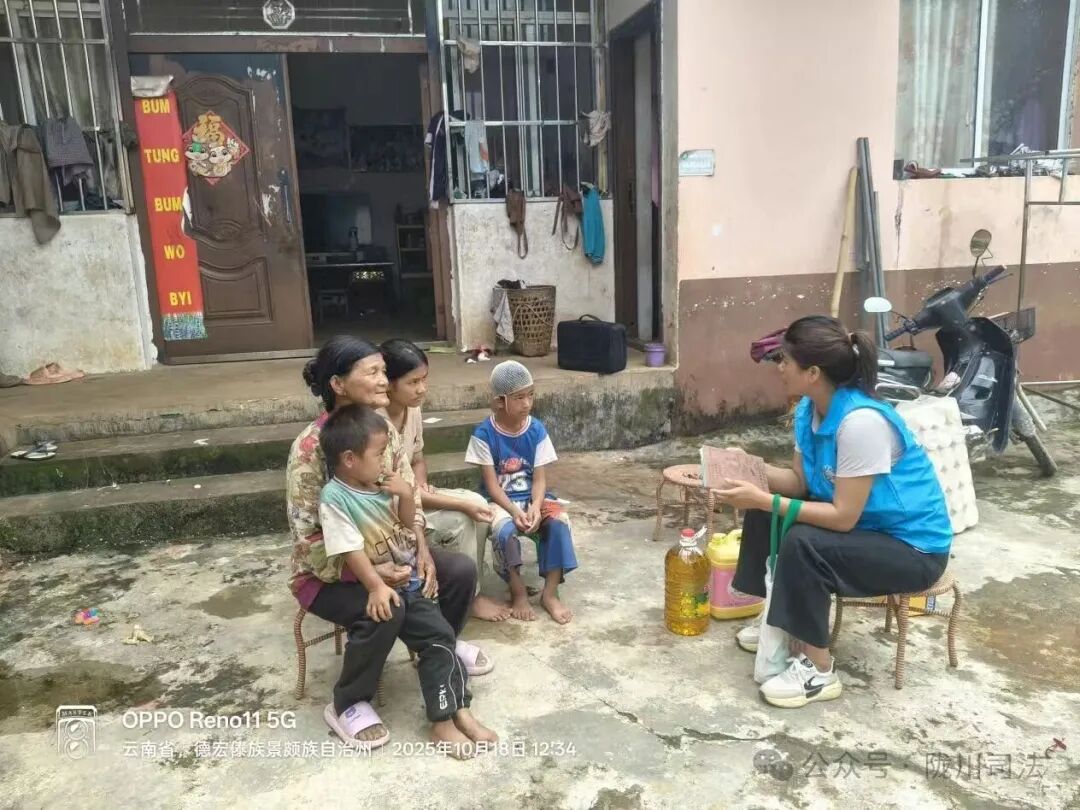 为切实提升辖区妇女儿童法律意识与自我保护能力,积极营造关心关爱妇儿、依法保障其合法权益的浓厚社区氛围,陇川县“刀木介法律明白人工作室”联动巴达村“两委”与志愿者,趁周末时光深入各村组,集中开展“周末入户送法”主题宣传活动,让法律知识与暖心服务精准直达家庭、浸润人心。