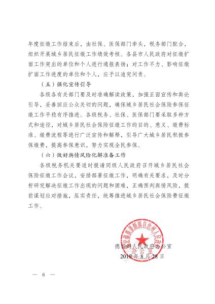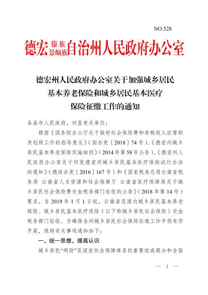 (NO.528)德宏州人民政府办公室关于加强城乡居民基本养老保险和城乡居民基本医疗保险征缴工作的通知2019.08.28