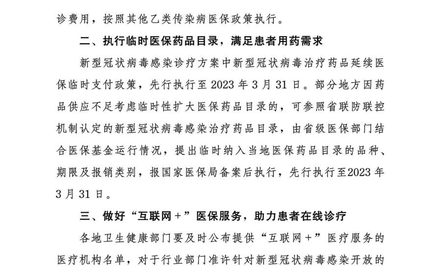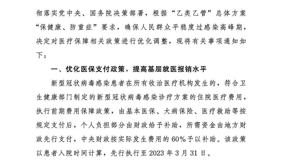 关于实施“乙类乙管”后优化新型冠状病毒感染患者治疗费用医疗保障相关政策的解读