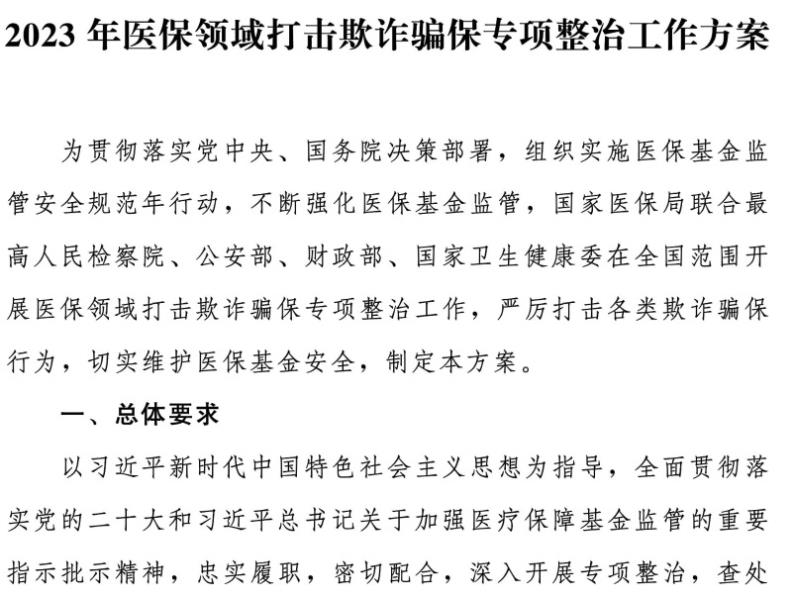 《2023年医保领域打击欺诈骗保专项整治工作方案》政策解读
