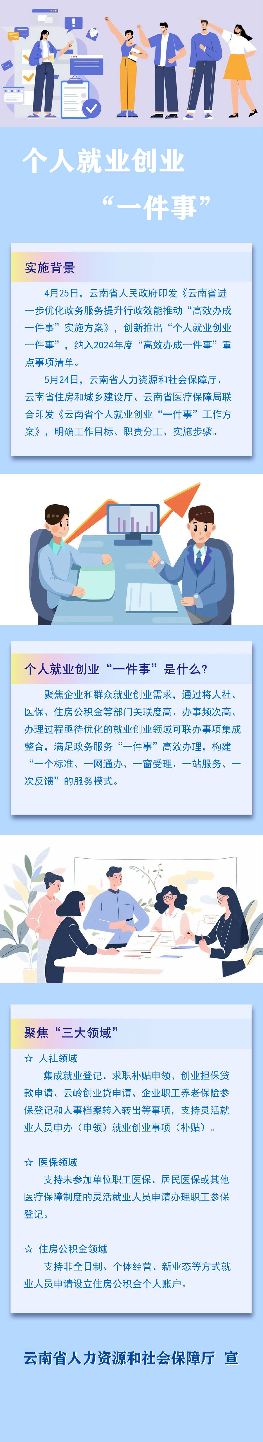 为贯彻落实《国务院关于进一步优化政务服务提升行政效能推动“高效办成一件事”的指导意见》(国发〔2024〕3号)和《云南省人民政府关于印发<云南省进一步优化政务服务提升行政效能推动“高效办成一件事”实施方案>的通知》(云政发〔2024〕15号)有关要求,推动个人就业创业关联事项实现跨层级、跨部门集成办理,制定本工作方案。